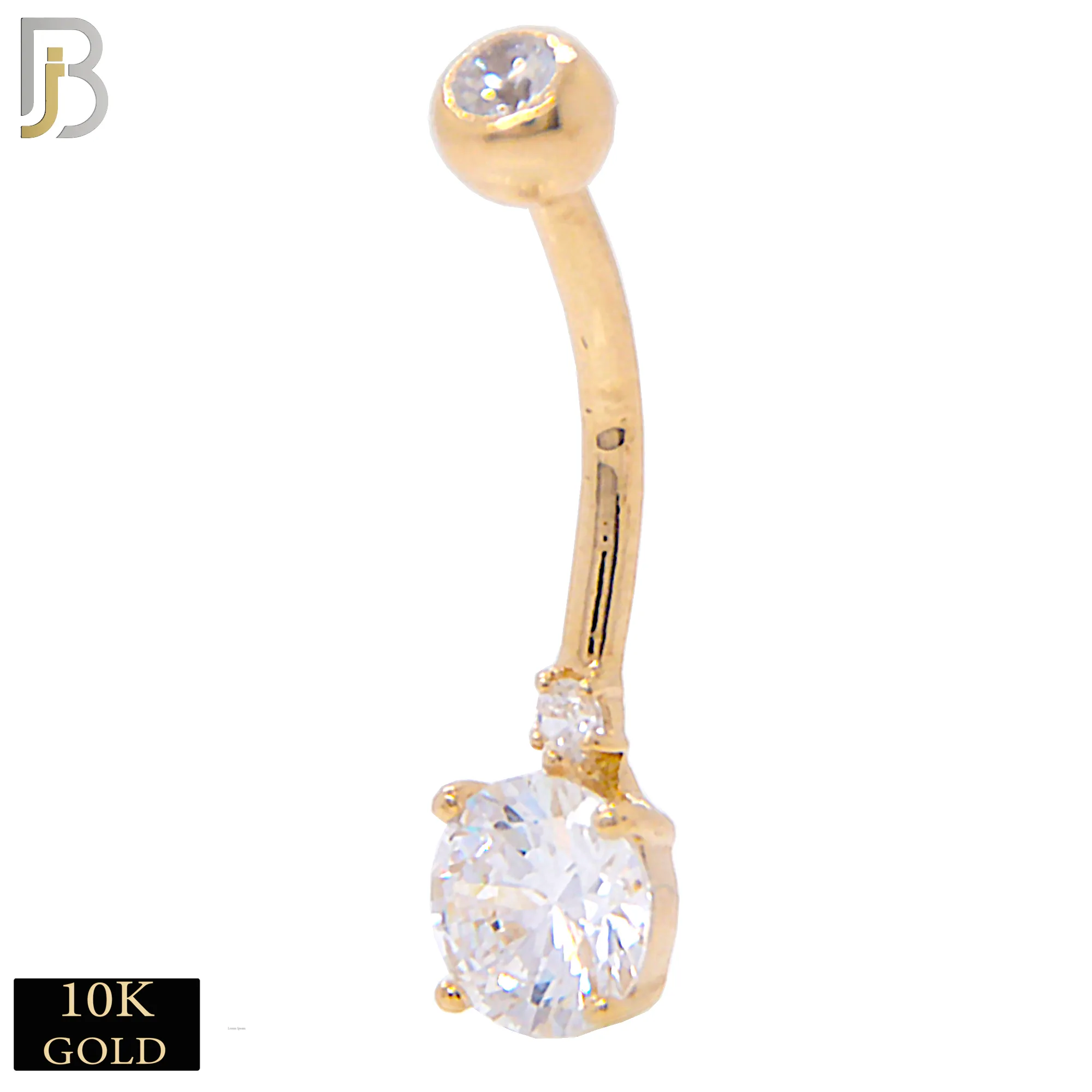 10k Solid Gold Banana Belly Ring Double Round Prong Setting Zircon