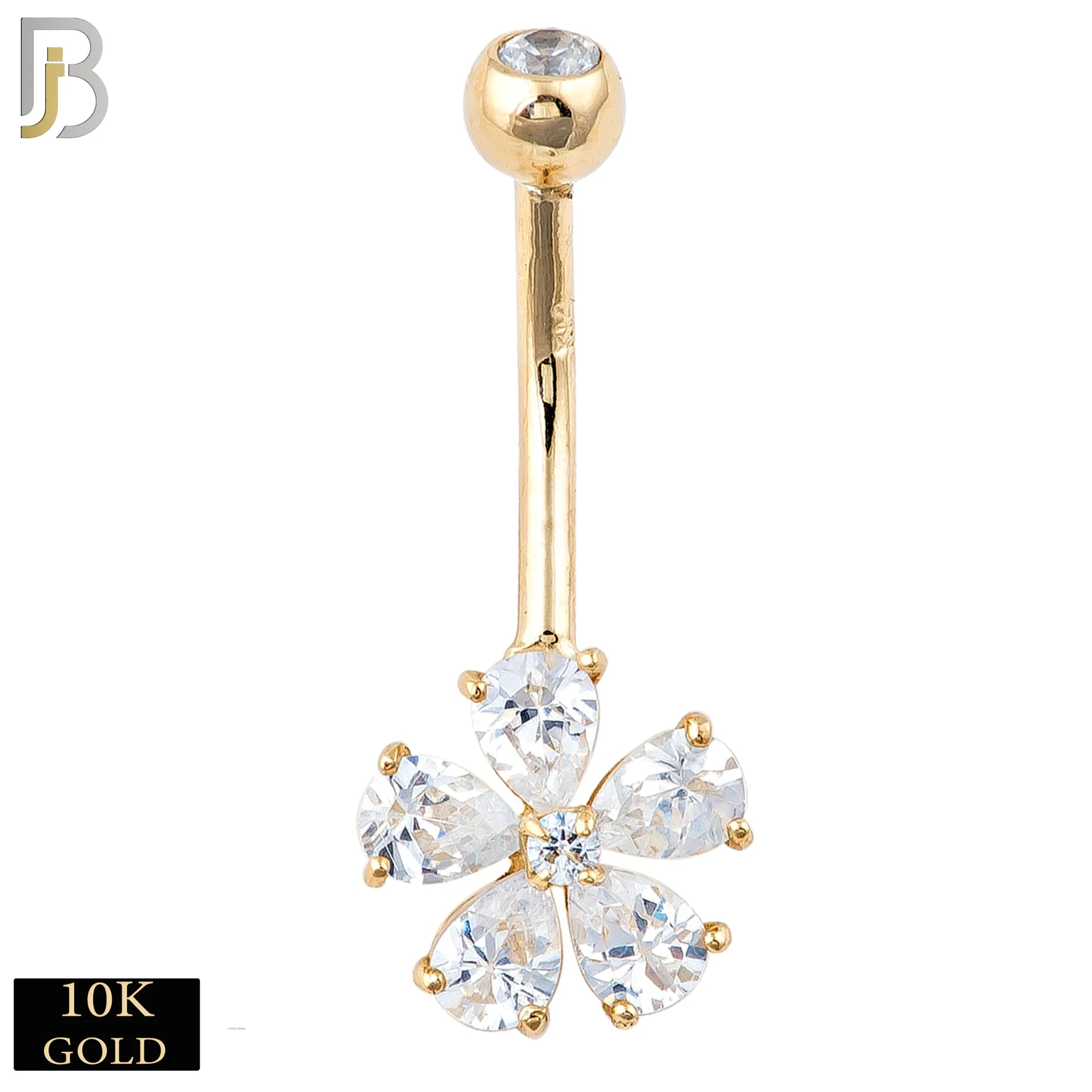 10-NB06 – 10k Solid Gold Banana Belly Ring with 5 Zircon Petal Flower Design