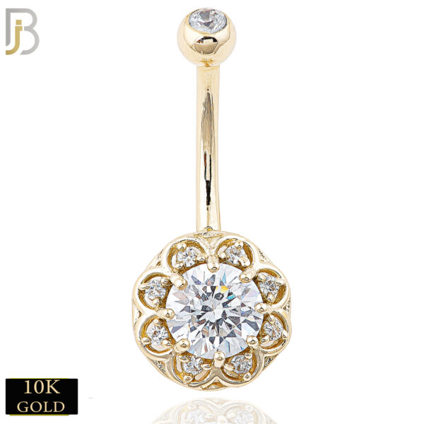 10k Solid Gold Banana Belly Ring with 10mm Flower Design