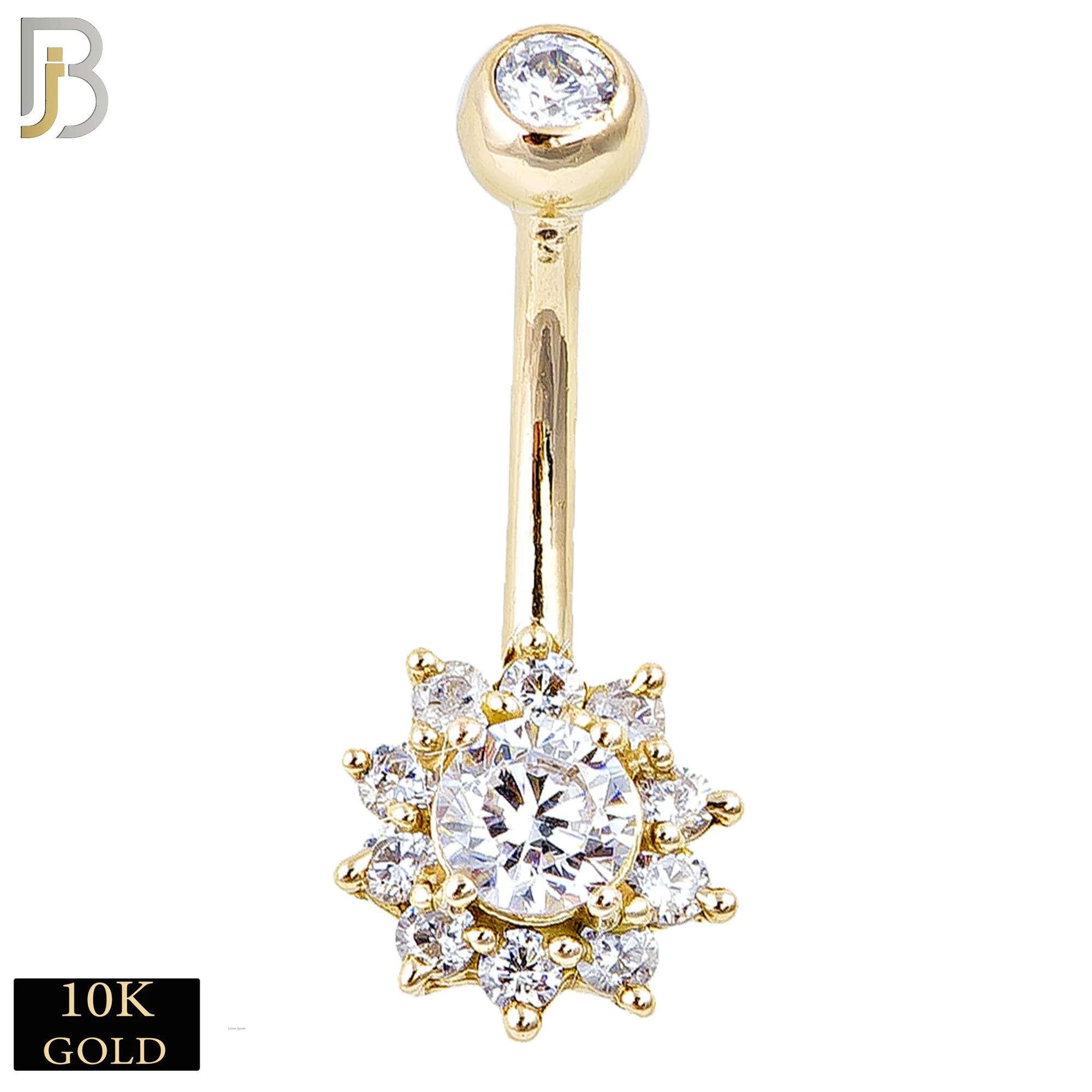 10k Solid Gold Banana Belly Ring with Flower Design