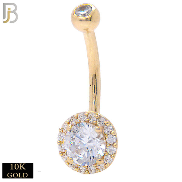 10k Solid Gold Banana Belly Ring with Round CZ Design