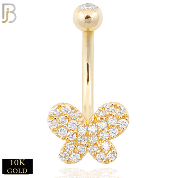 10k Solid Gold Banana Belly Ring with 8mm Butterfly Design
