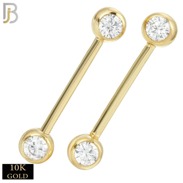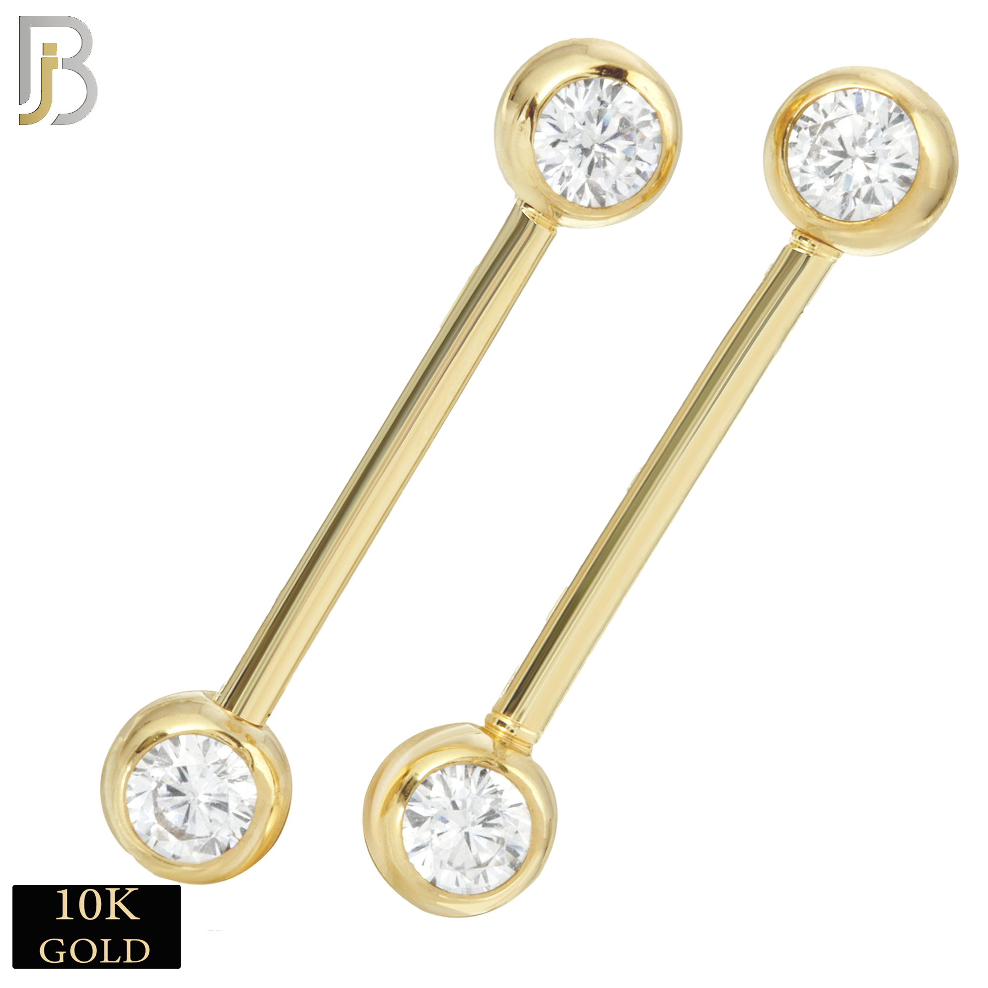 10k Solid Gold Nipple Ring Piercing Round Zircon in Bezel Setting Externally Threaded