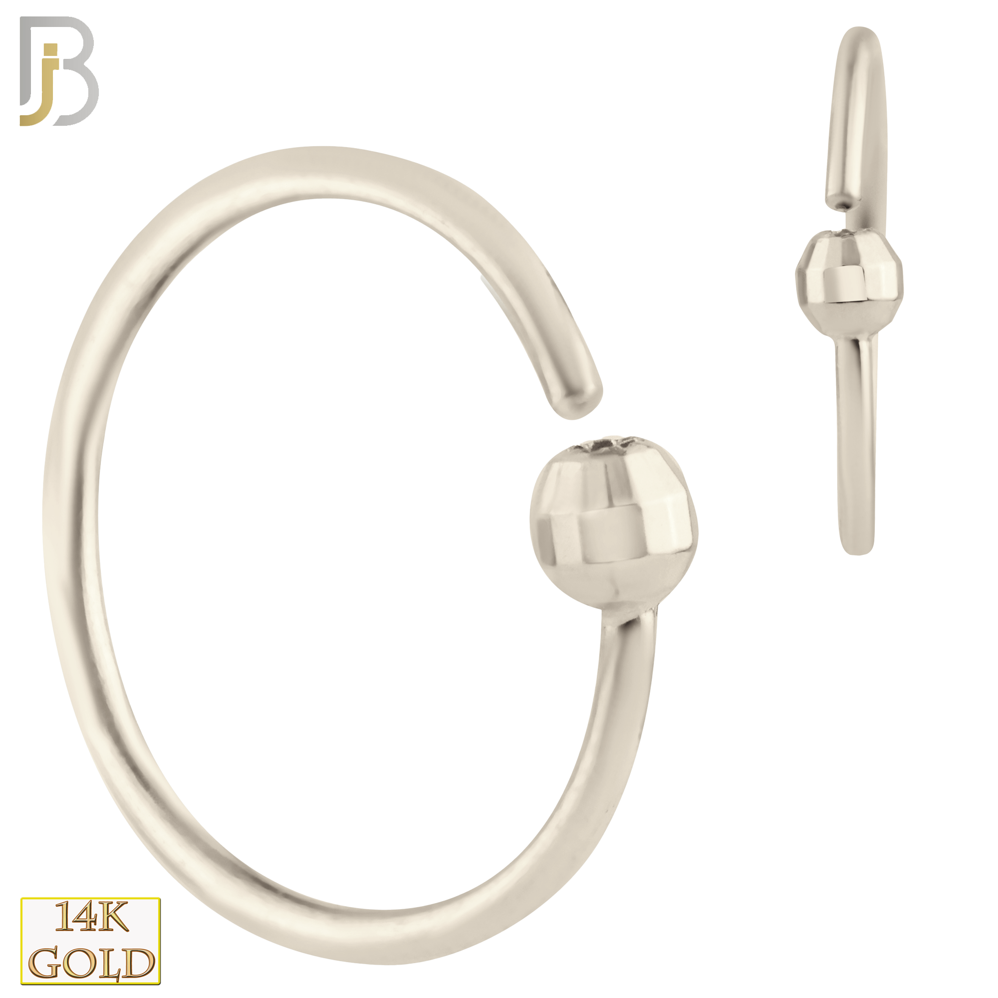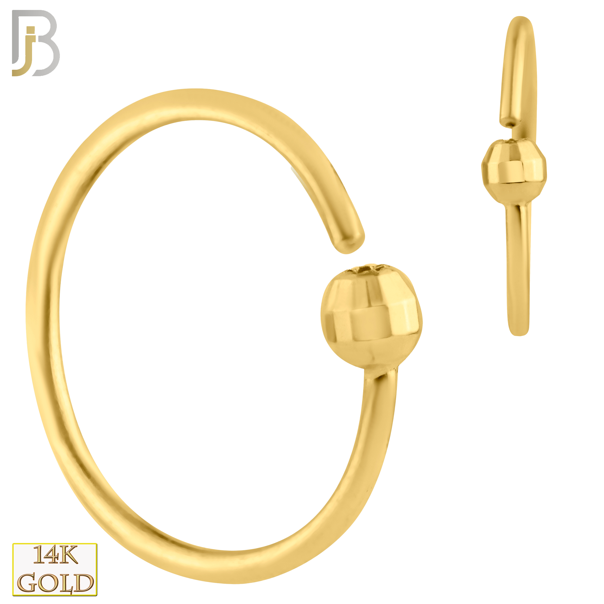 14k Solid Gold Fixed Disco Ball Bead Hoops Piercing Twist to Open