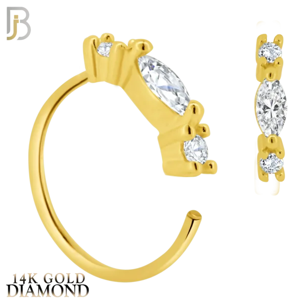 14-CT114D- 14K Solid Gold Hoops with GH / VS1 Natural Diamonds Marquise Shaped and 2 Round Side Stones