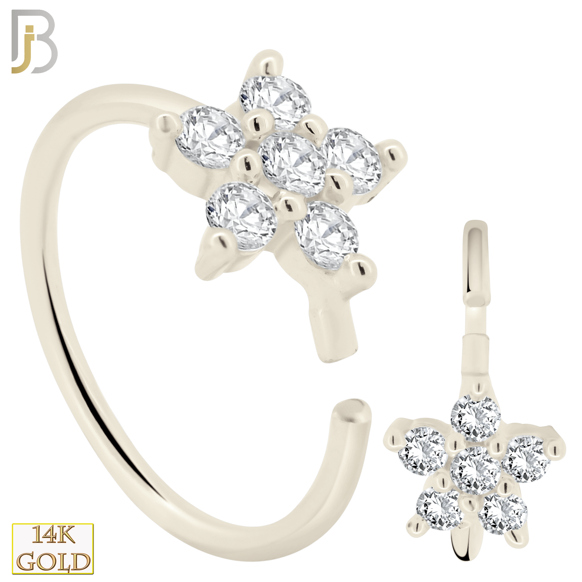 14k Solid Gold Five Petal Star Shaped Flower with Cubic Zirconia Nose Hoops