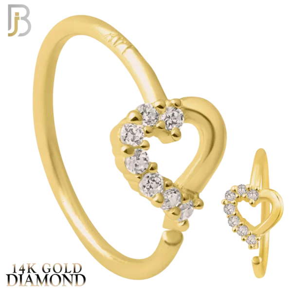 14-CT36D – 14k Yellow Gold Hollow Heart with GH / SI1 Natural Diamond Half Around Hoop Piercing