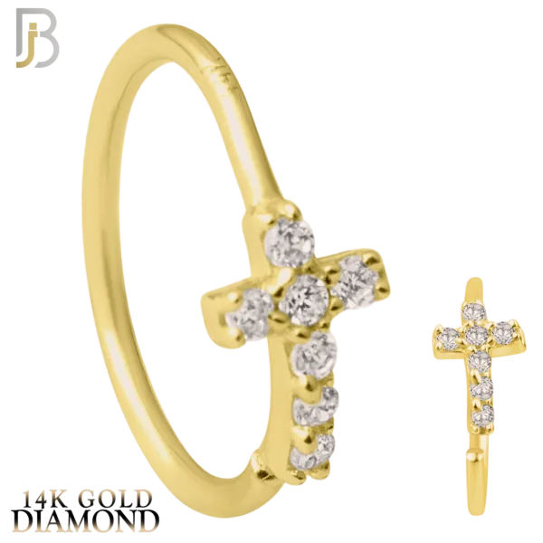 14k Yellow Gold Cross with GH / SI1 Natural Diamonds Hoop Piercing