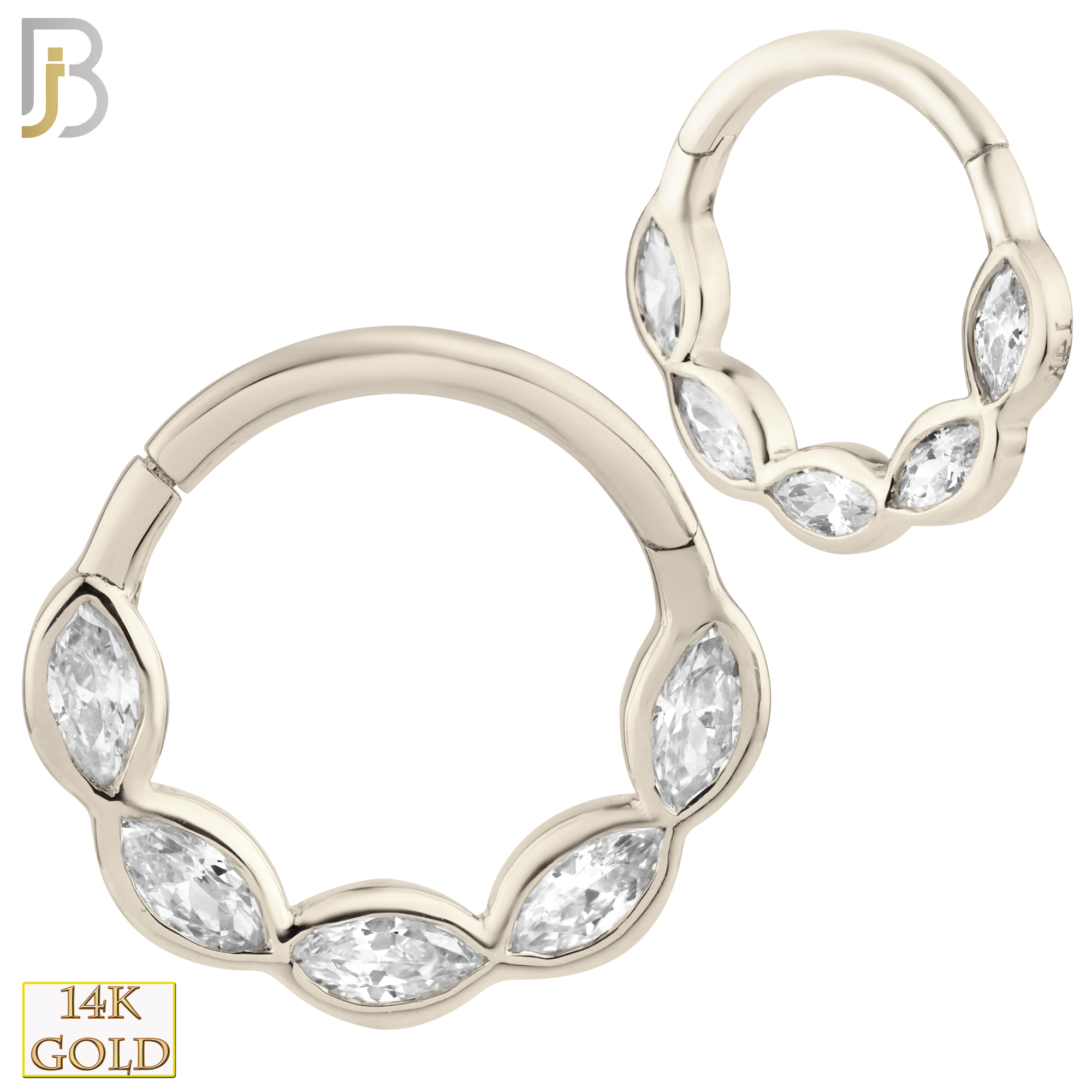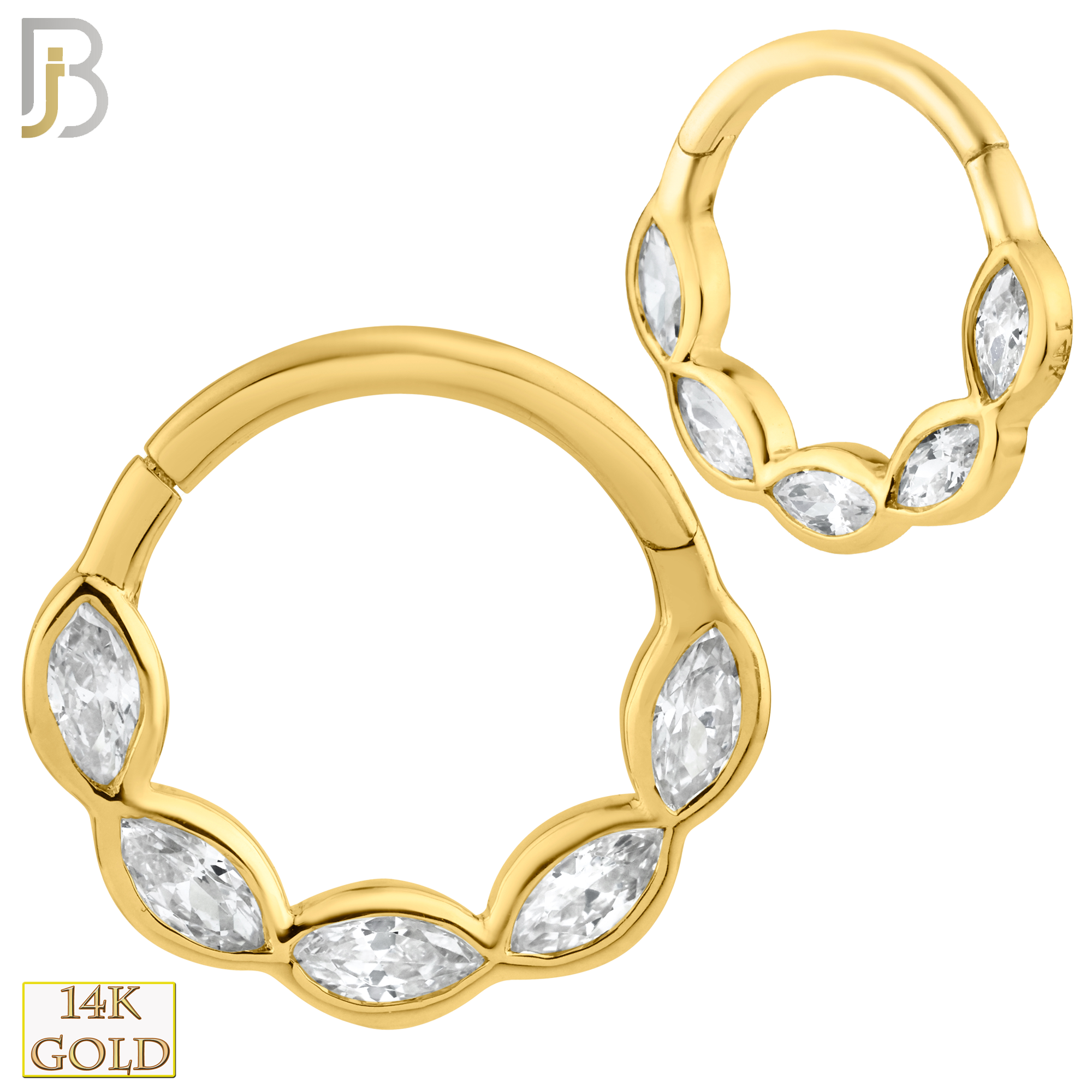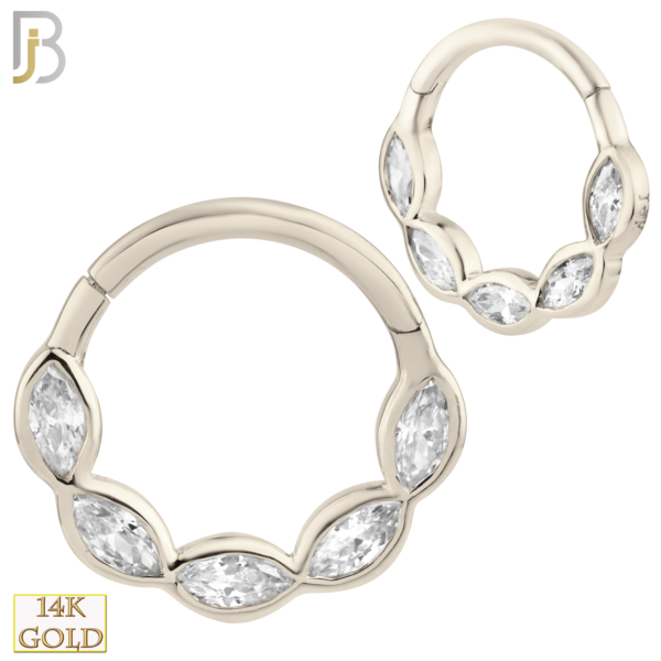 14K Solid Gold Hinged Hoops with Marquise Zircon in Bezel Setting