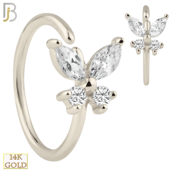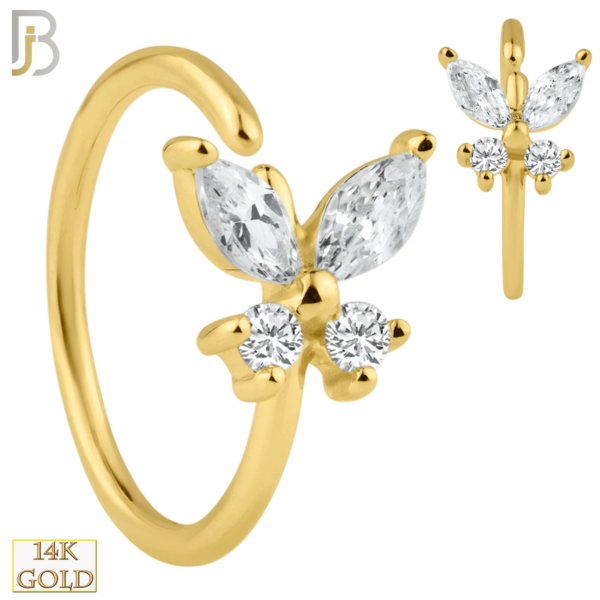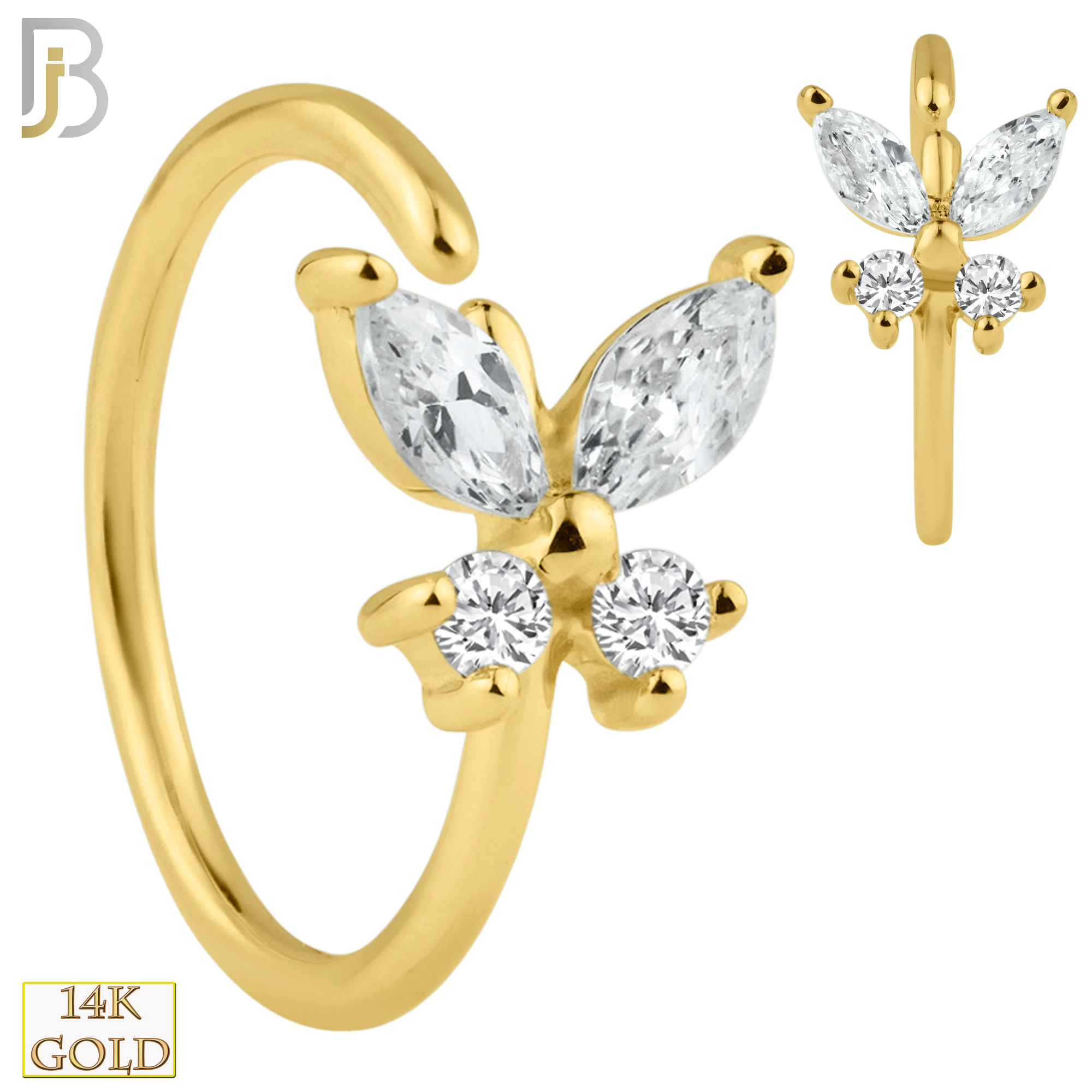 14K Solid Gold Butterfly with Zircon Nose Hoops