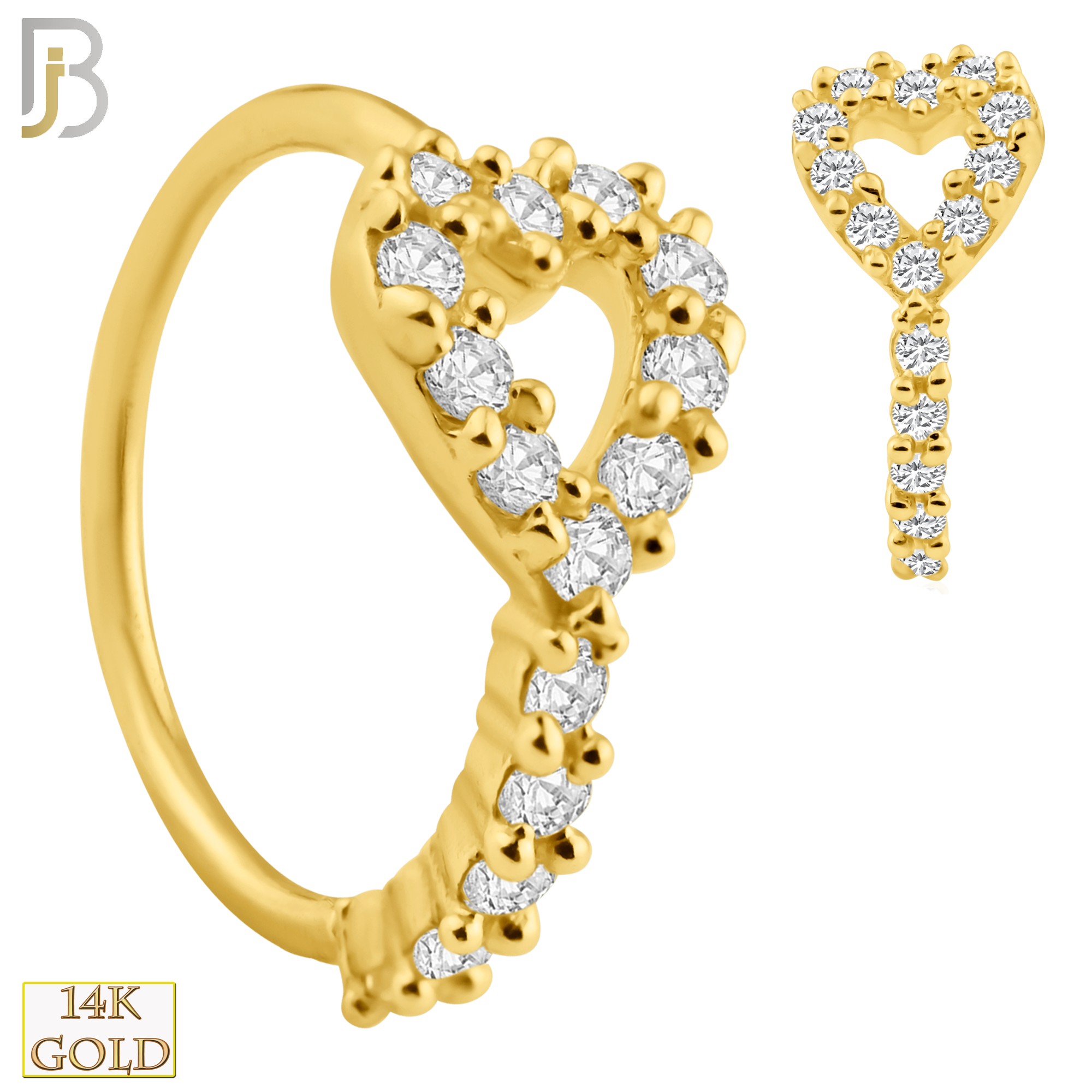 14-CT71 – 14K Solid Gold Heart Design with Line of Multi Zircon Nose Hoops