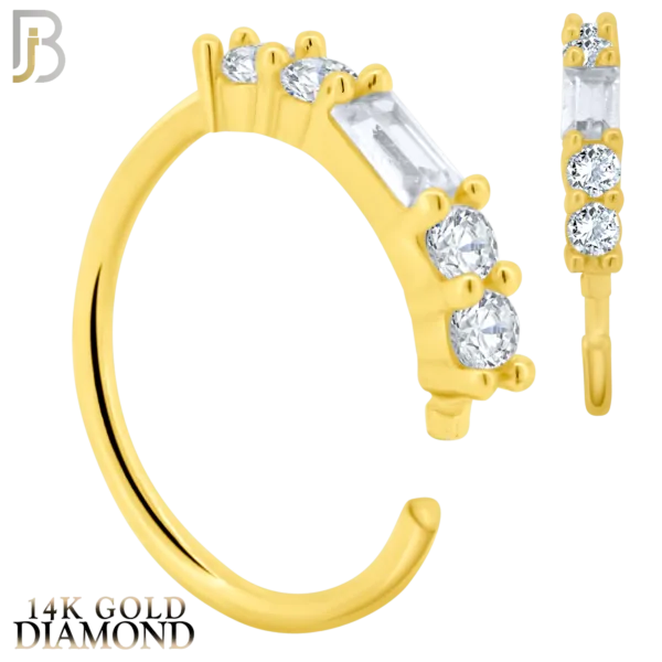 14K Solid Gold Hoops with Baguette and Round Side Stones GH / VS1 Natural Diamonds