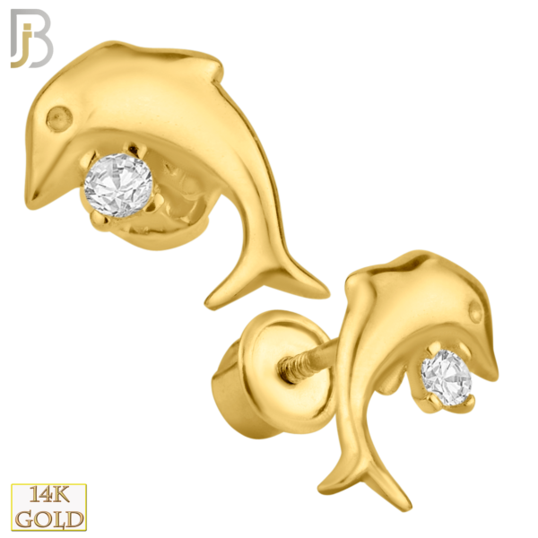14k Solid Gold Dolphin with Single CZ Stone Stud Earrings