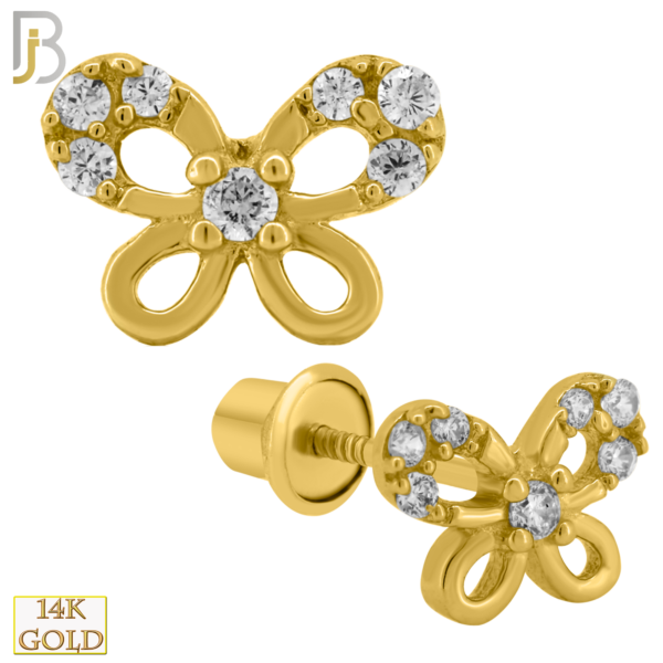 14-ES203 – 14k Solid Gold Butterfly Design Earring Stud with Clear Zircon