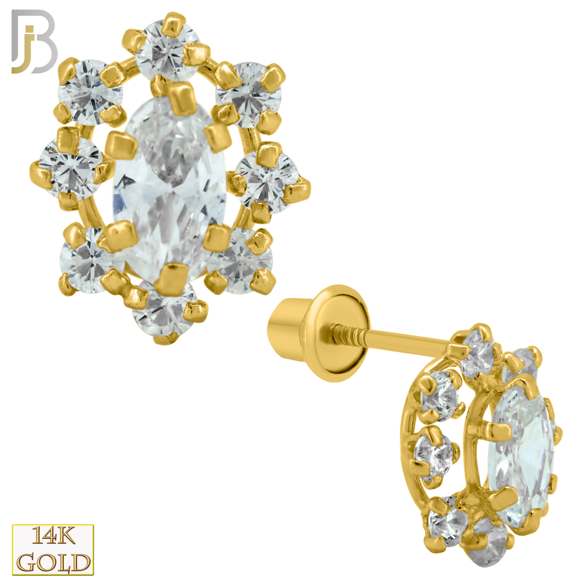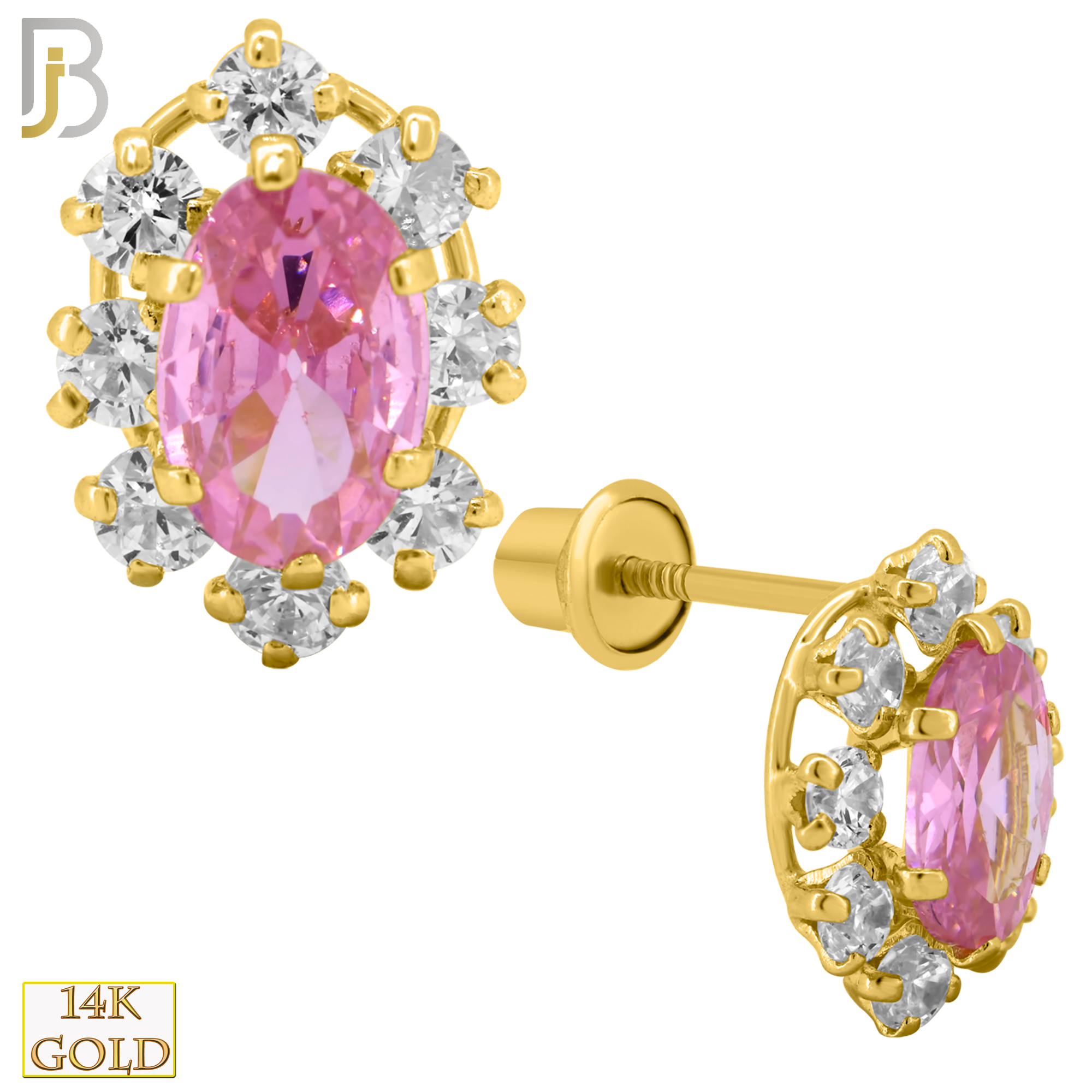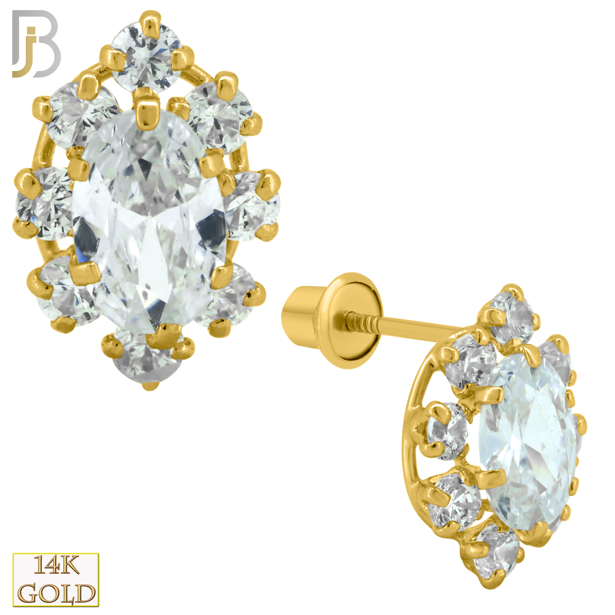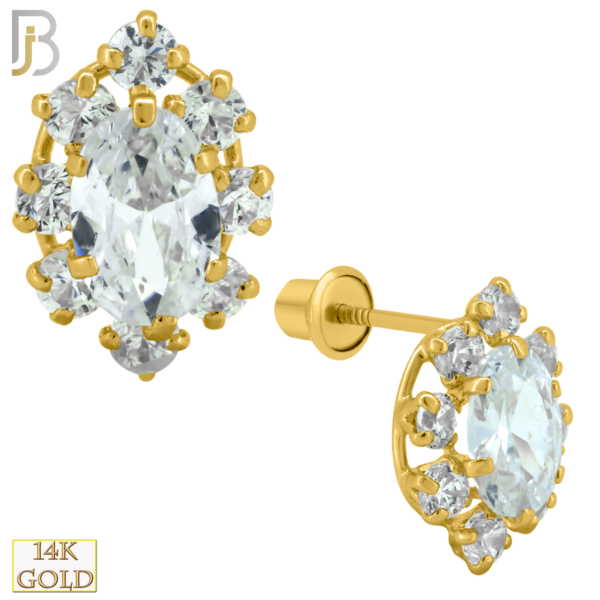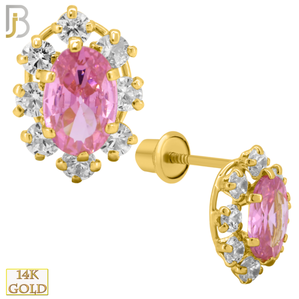 14k Solid Gold 9mm Oval with CZ Around Design Earring Stud with Clear Zircon