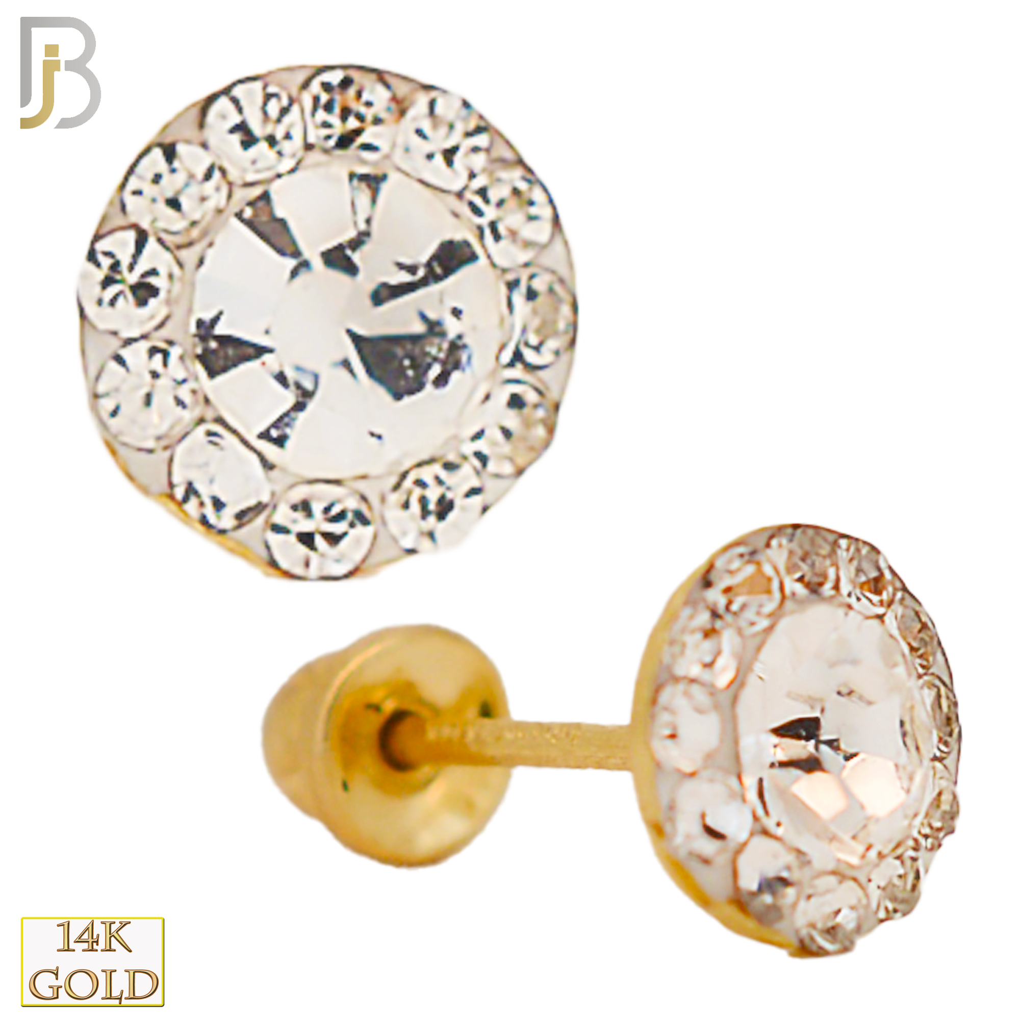 14k Yellow Gold Screw Back Round CZ Halo Stud Earrings