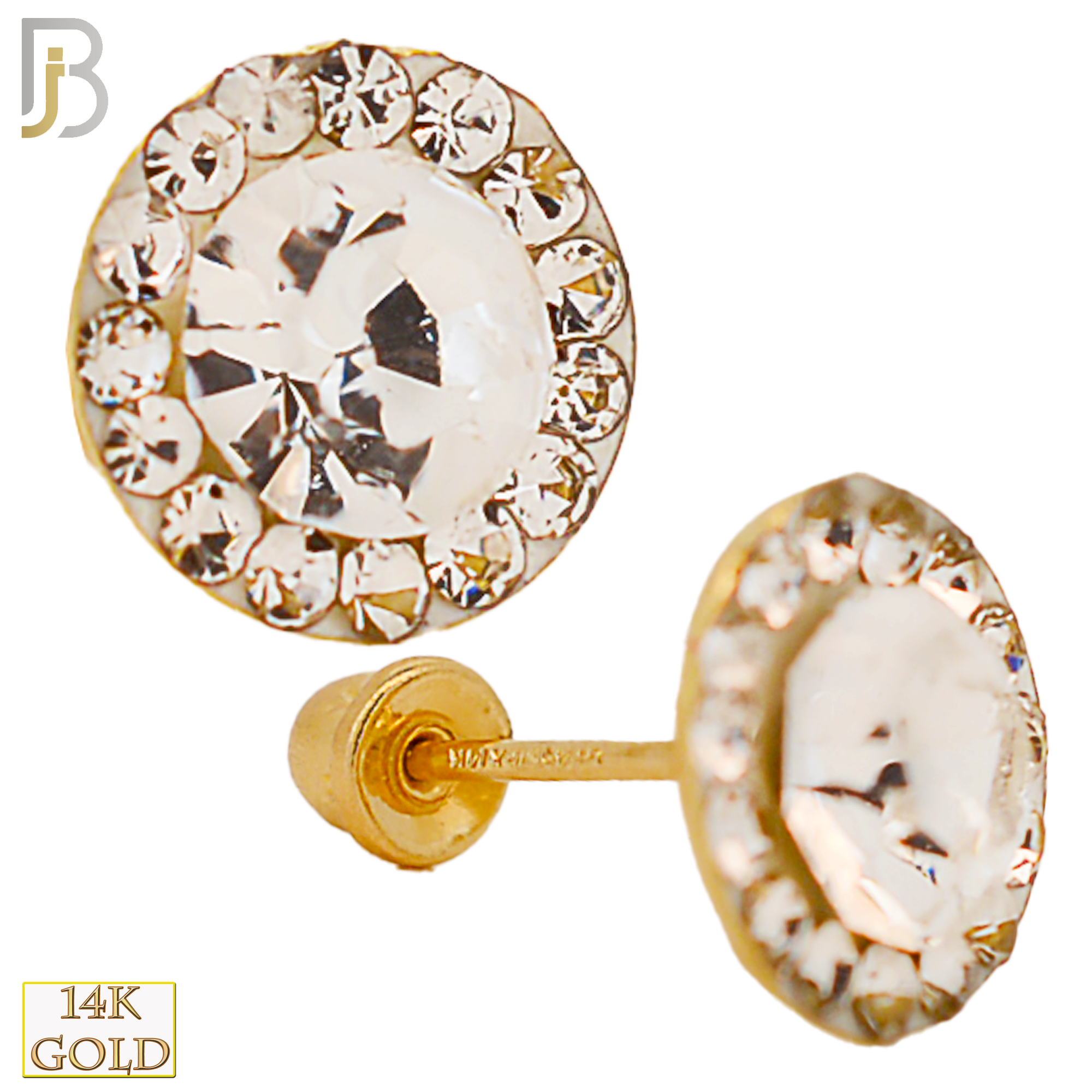 14-ES41YC – 14k Yellow Gold Screw Back Round Clear CZ Halo Stud Earrings