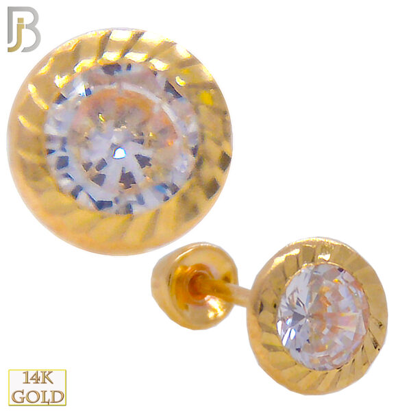 14-ES43YC – 14k Yellow Gold Screw Back Stamping Point Bezel Round CZ