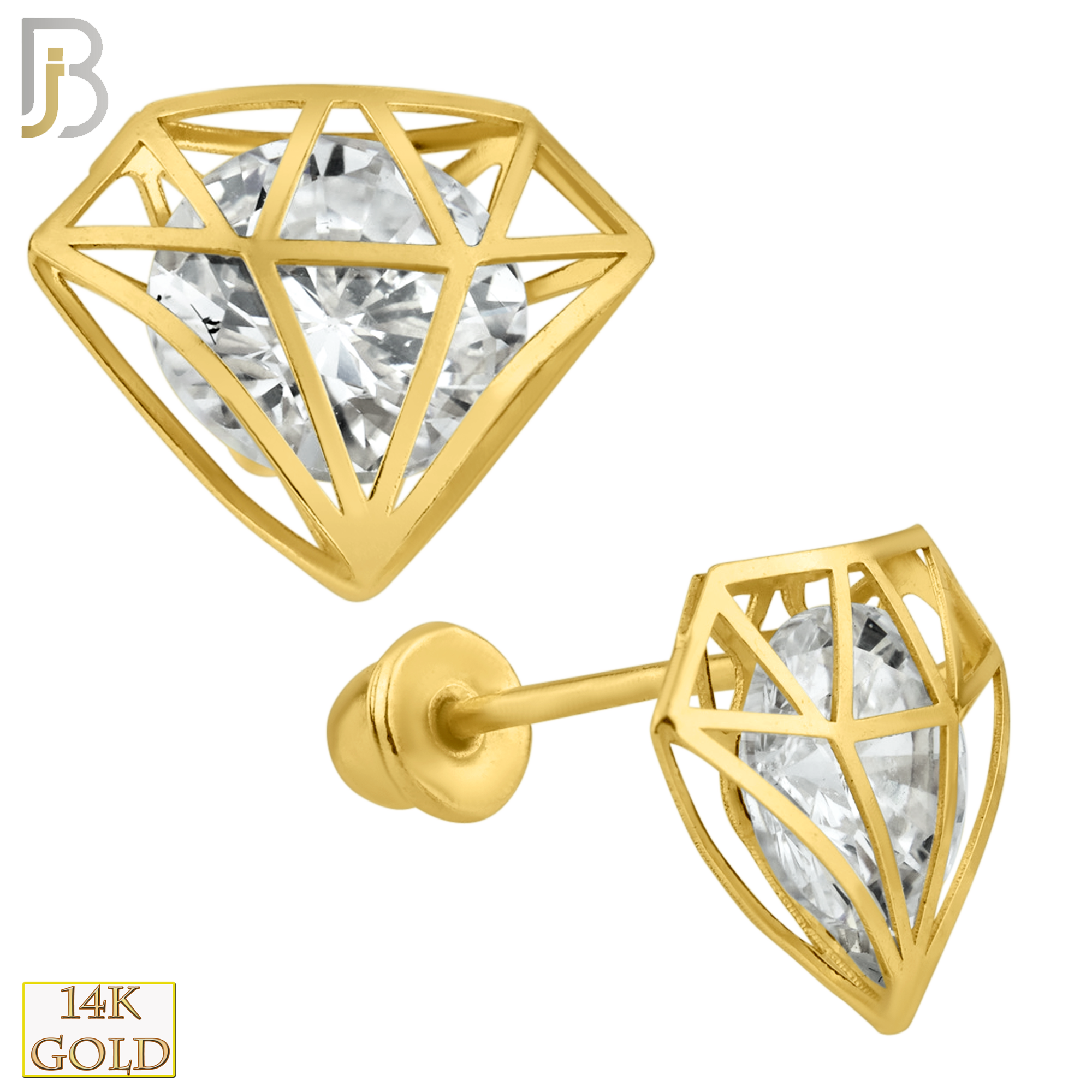14k Yellow Gold Screw Back CZ in Diamond-Shape Cage Stud Earrings