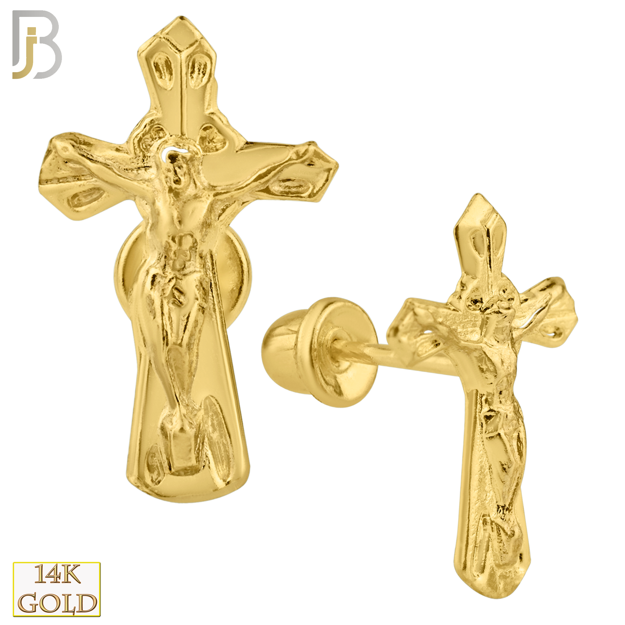 14k Solid Gold Screw Back Crucifix Stud Earrings