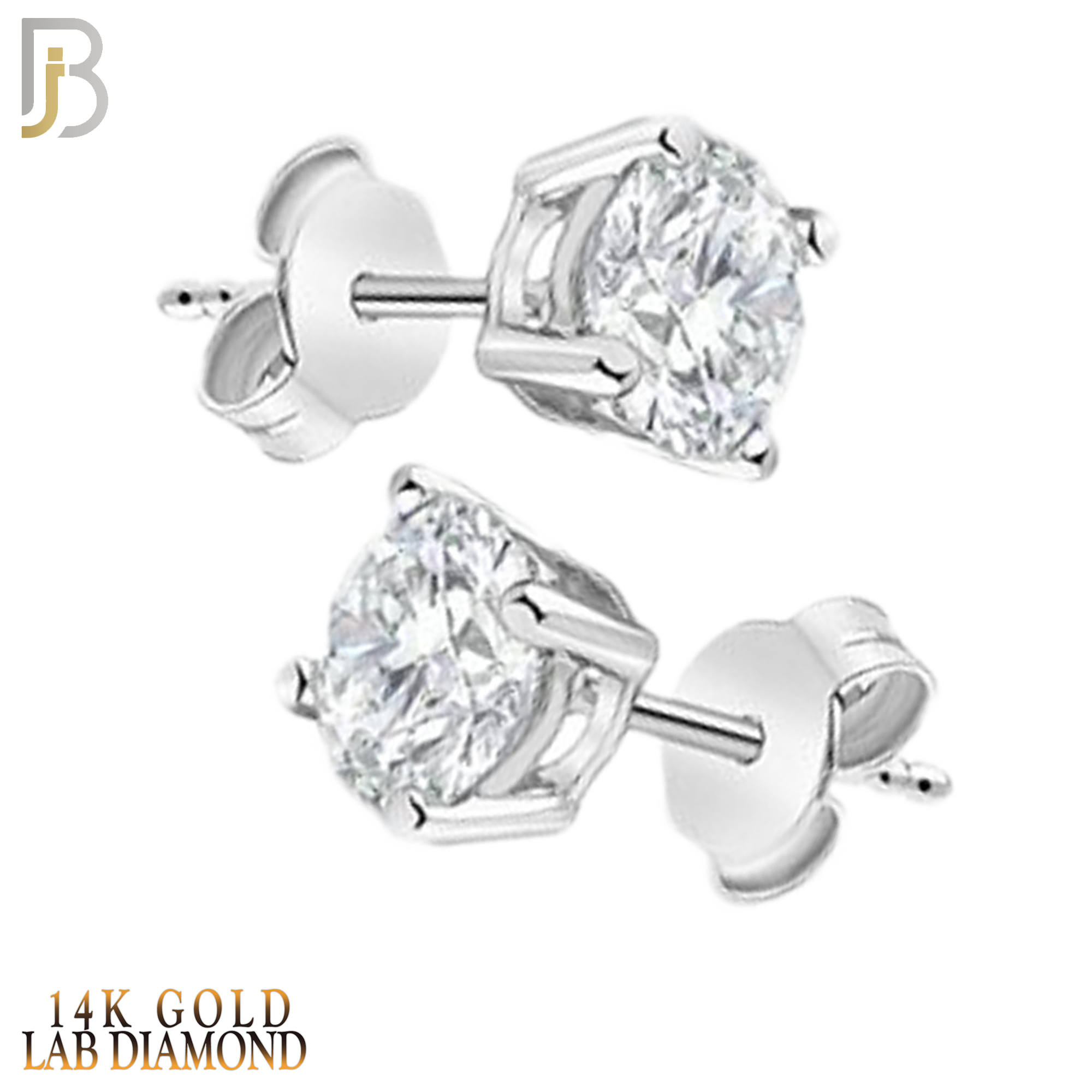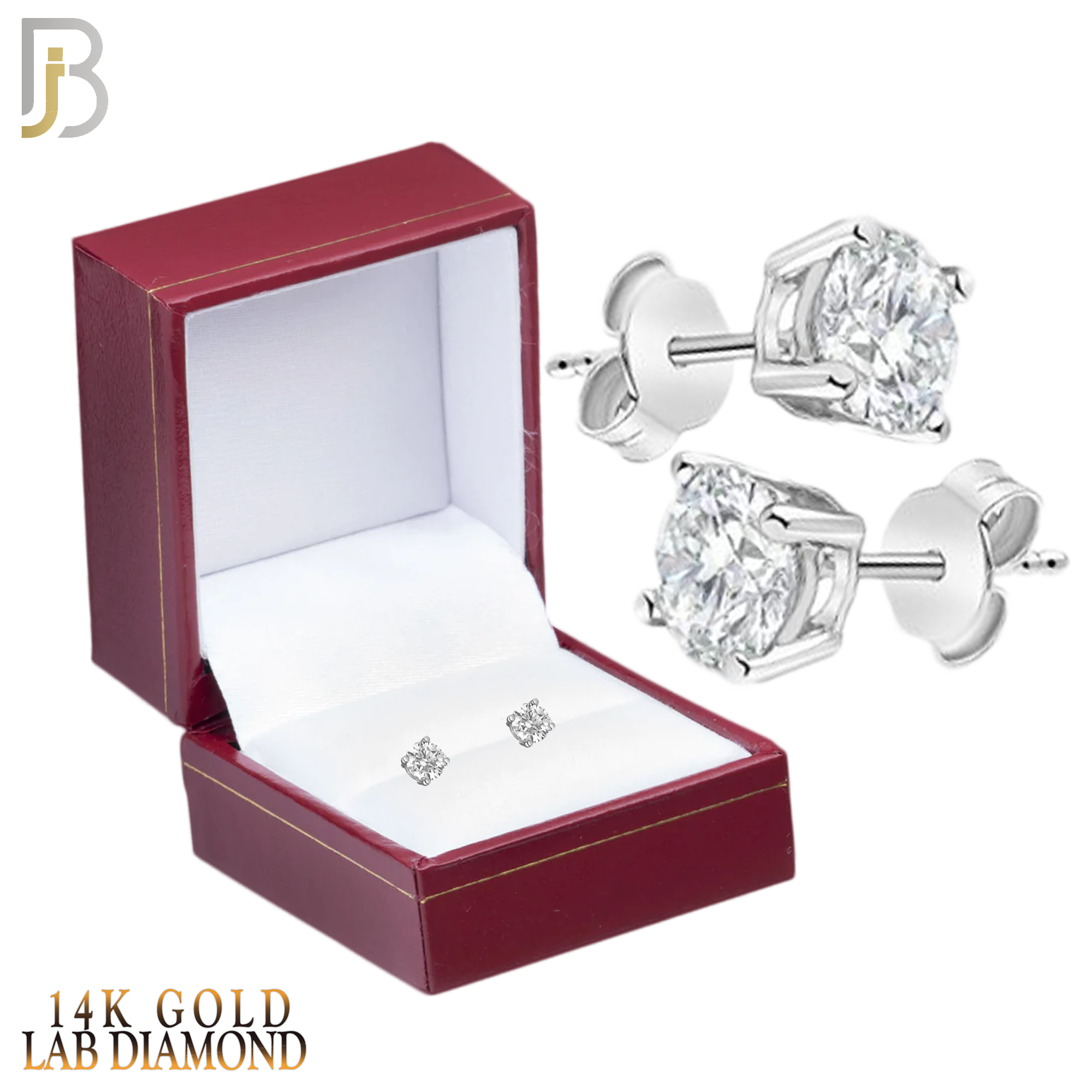 14K White Gold Push Back Stud Earrings with LAB Diamond
