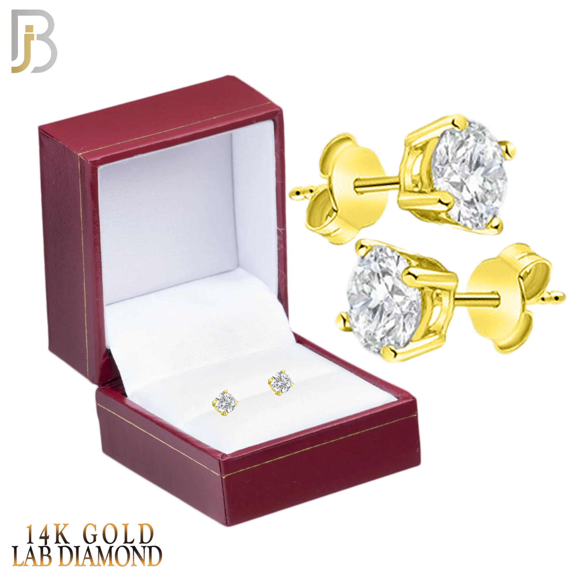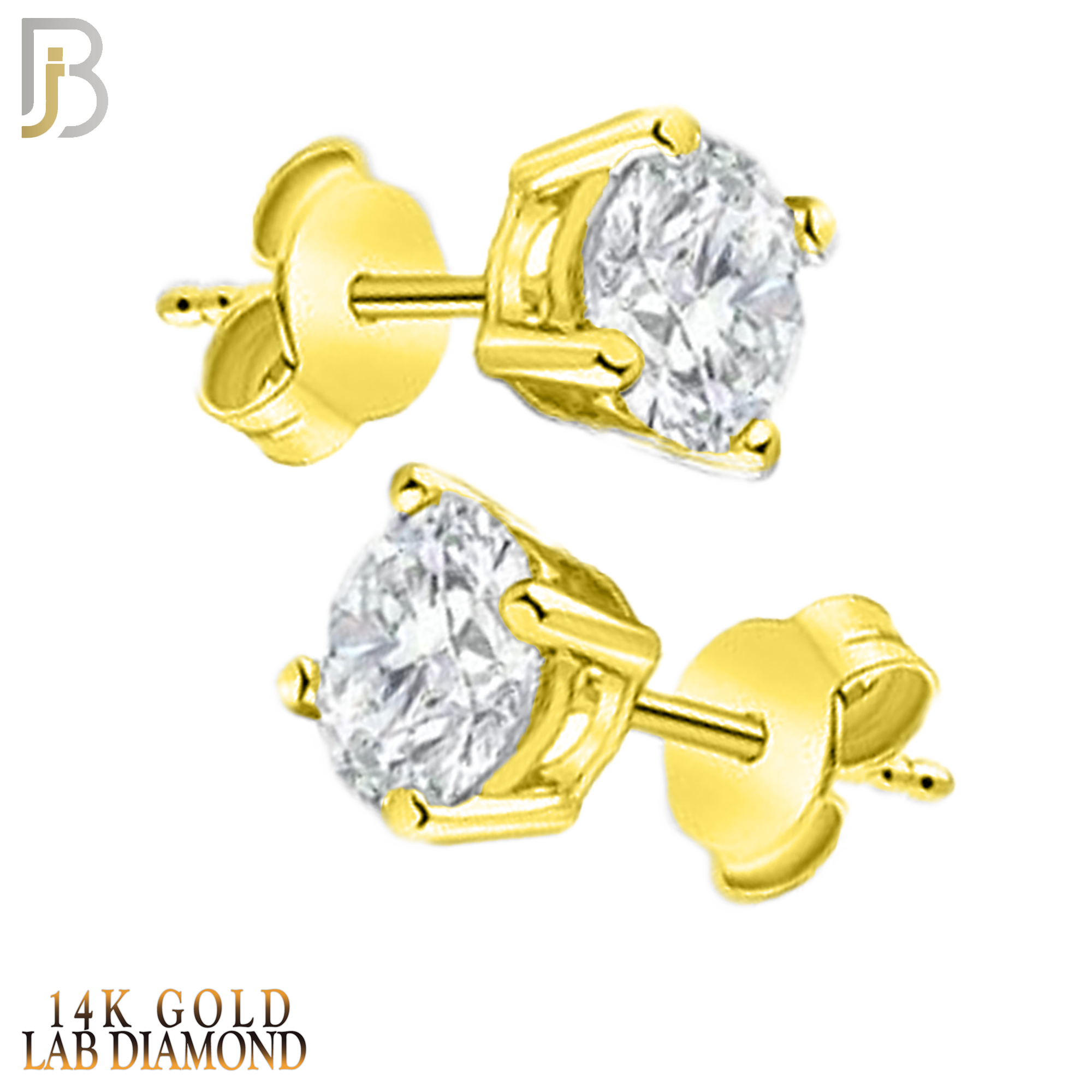 14K Yellow Gold Push Back Stud Earrings with LAB Diamond