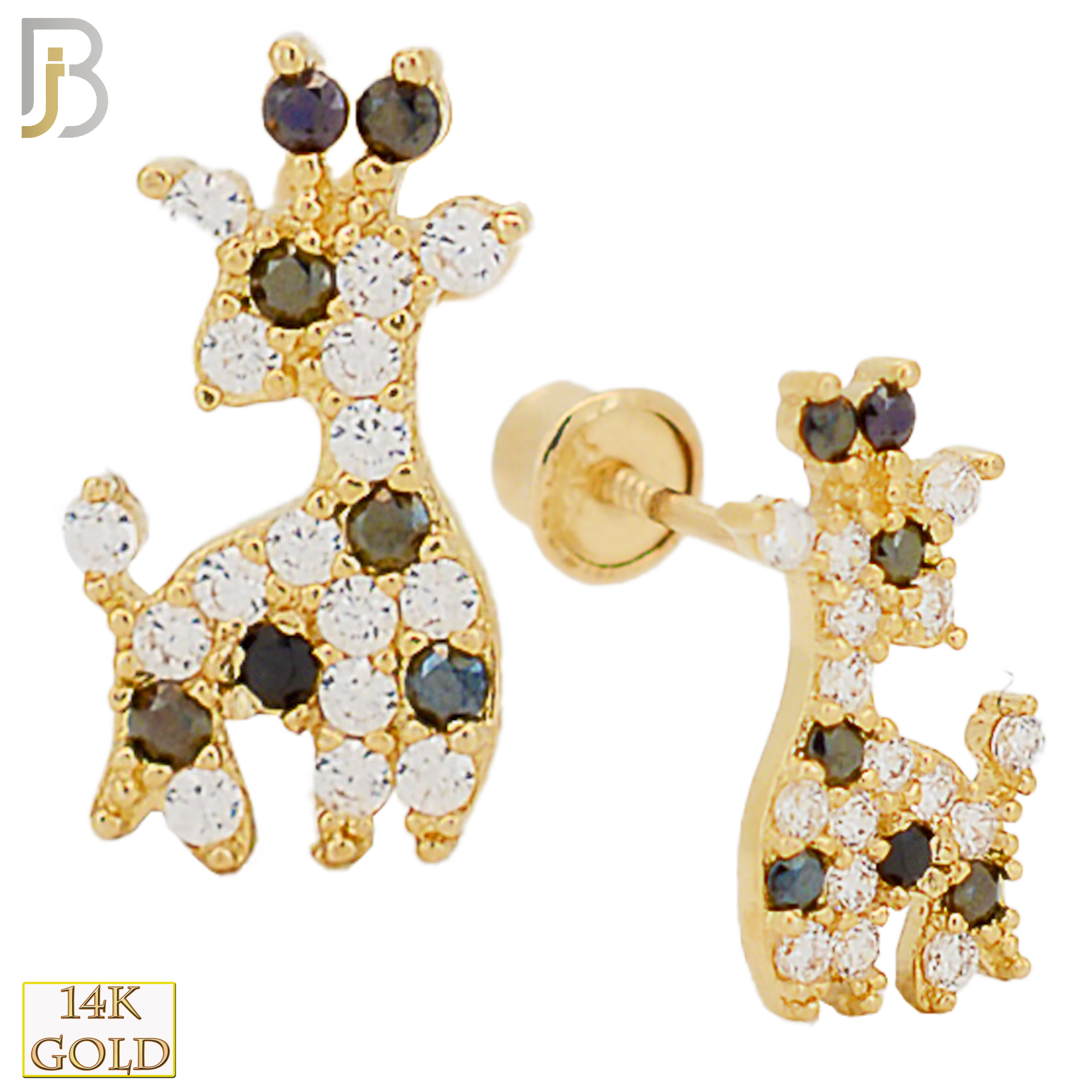 14-ES75YCK – 14k Yellow Gold Giraffe Design with Clear and Black CZ, Screw Back Stud Earrings