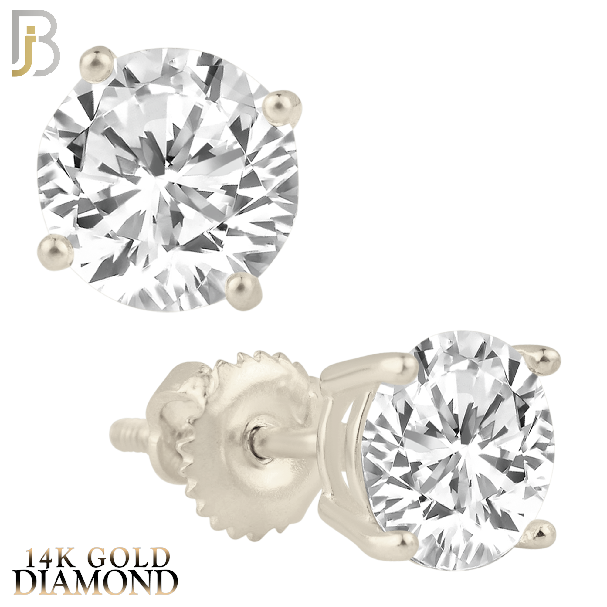 14K White Gold Screw Back Stud Earrings in Prong Setting with Natural Round Diamond (box included)