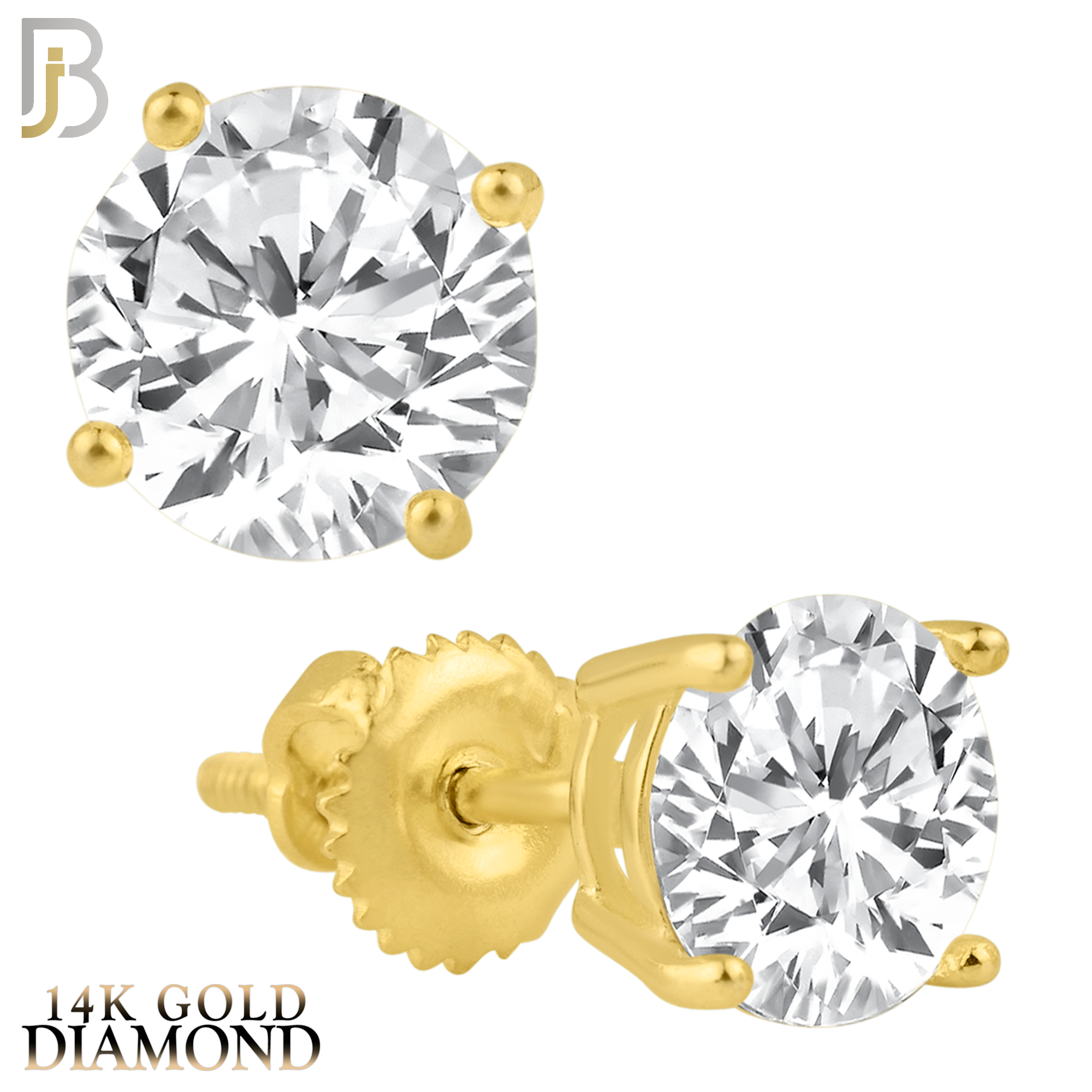 14K Yellow Gold Screw Back Stud Earrings in Prong Setting with Natural Round Diamond (box included)