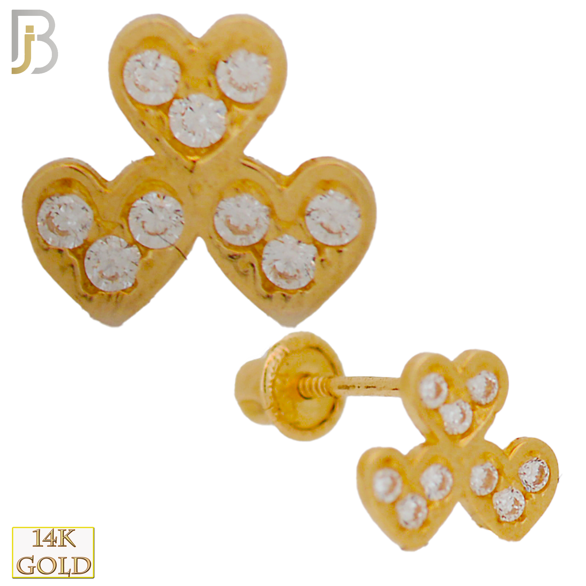 14k Solid Gold Three Hearts Triangle with Multi CZ Stud Earrings