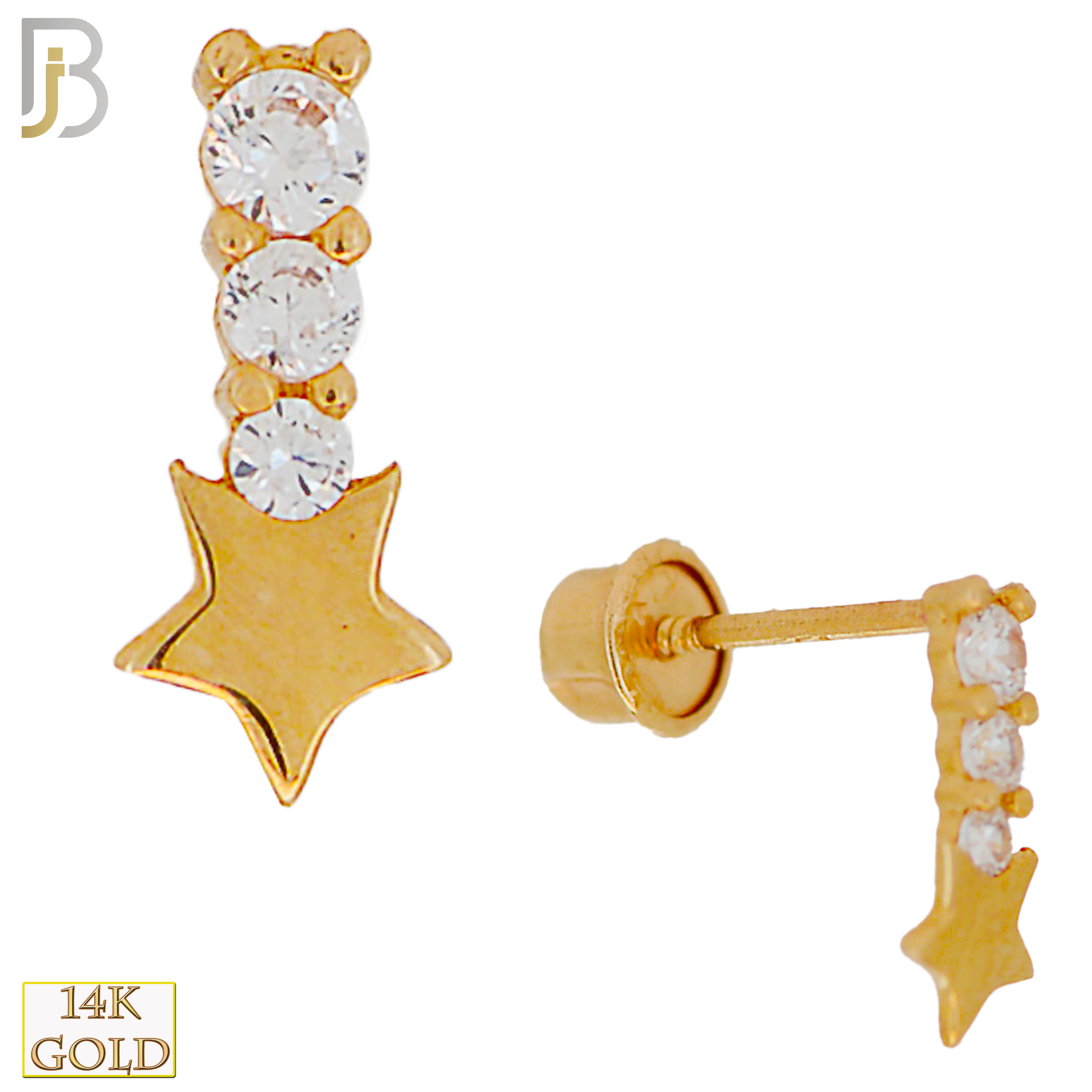 14k Solid Gold Falling Star with CZ Stud Earrings