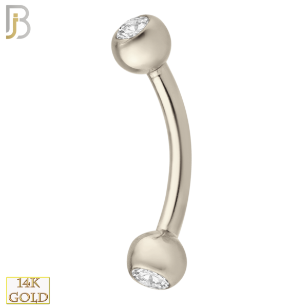14k Solid Gold Eyebrow Plain with Zircon Design External Threaded Screw