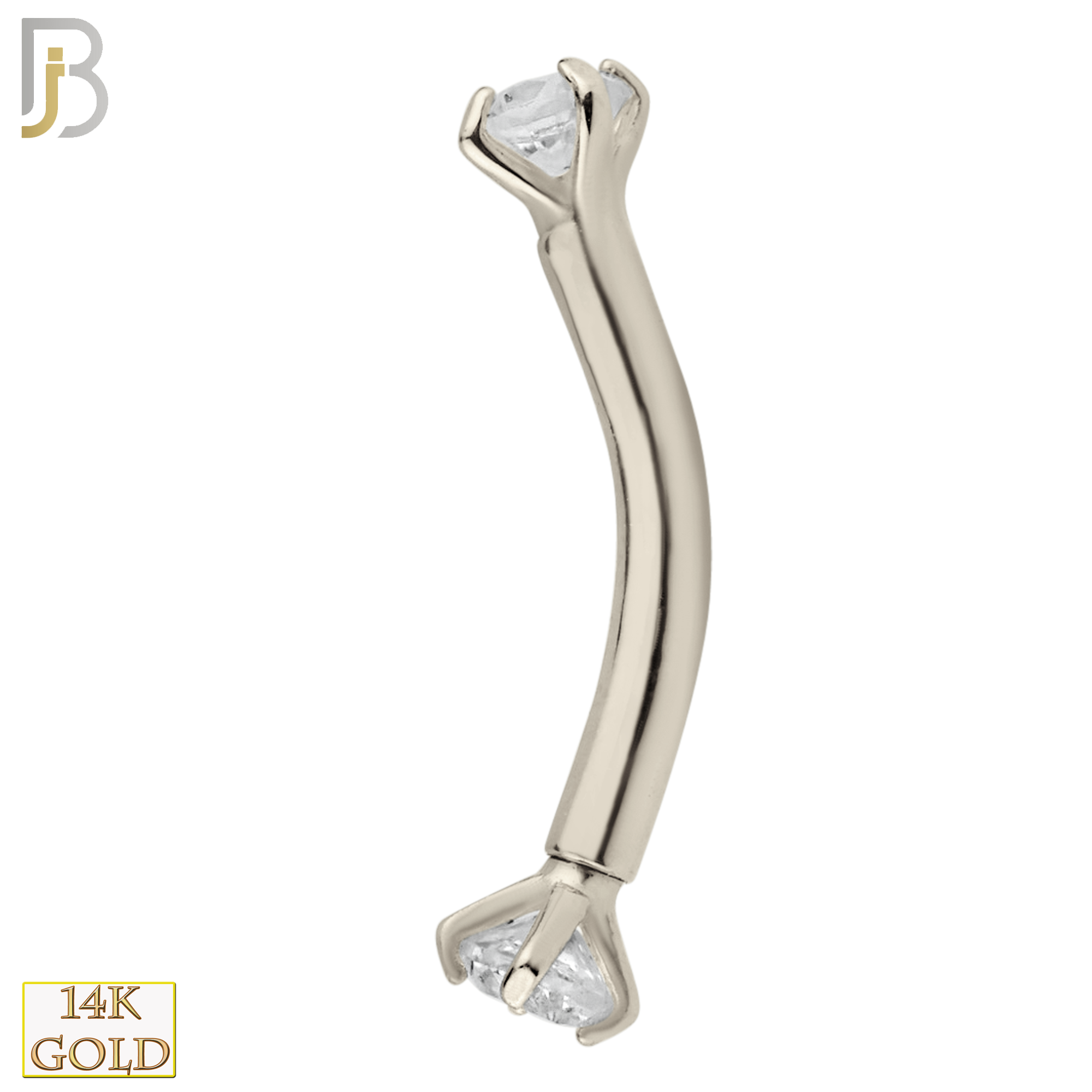 14k Solid Gold Eyebrow Prong Setting Zircon Design Internal Threaded Screw