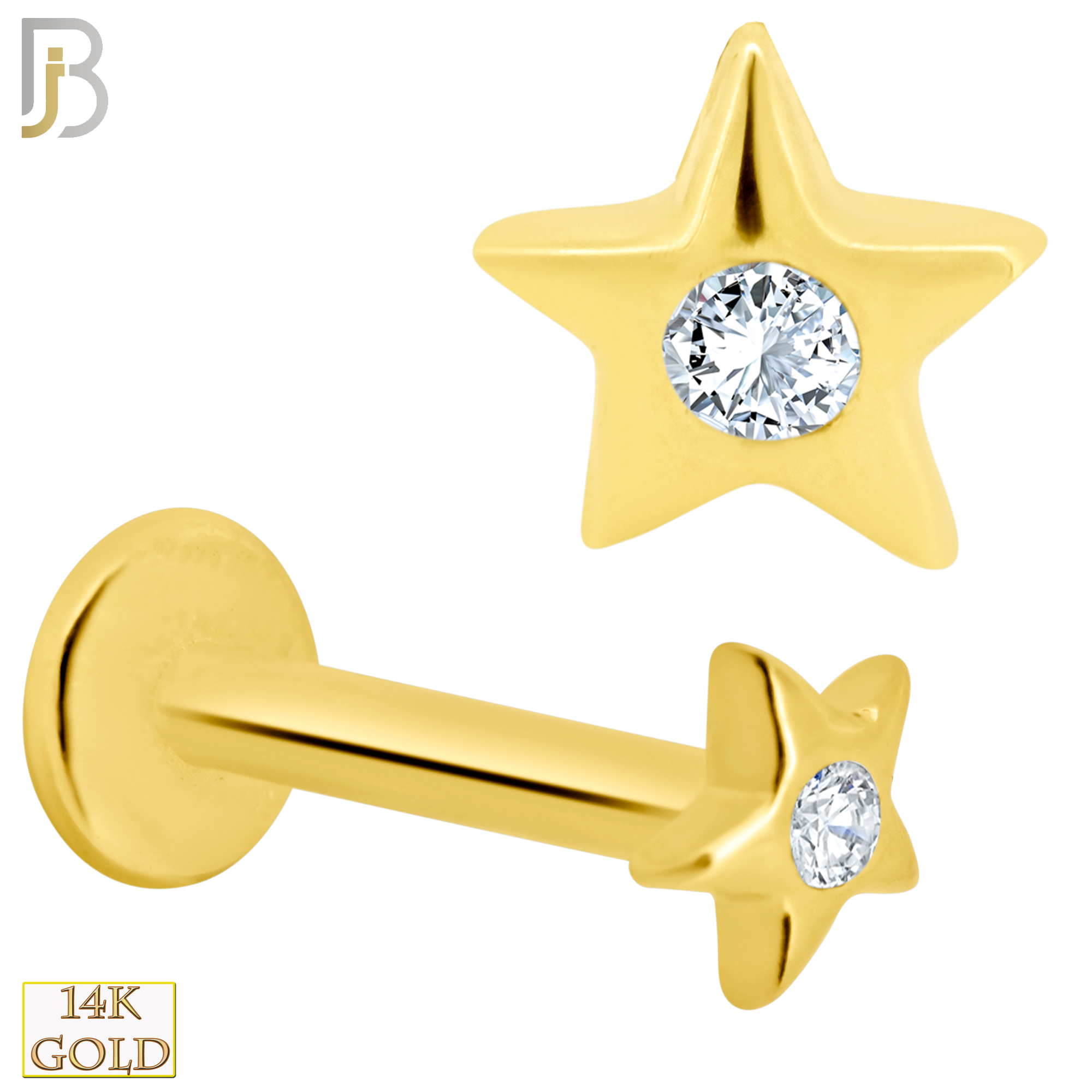 14-LB13 – 14k Solid Gold Star with Zircon Internally Threaded Labret