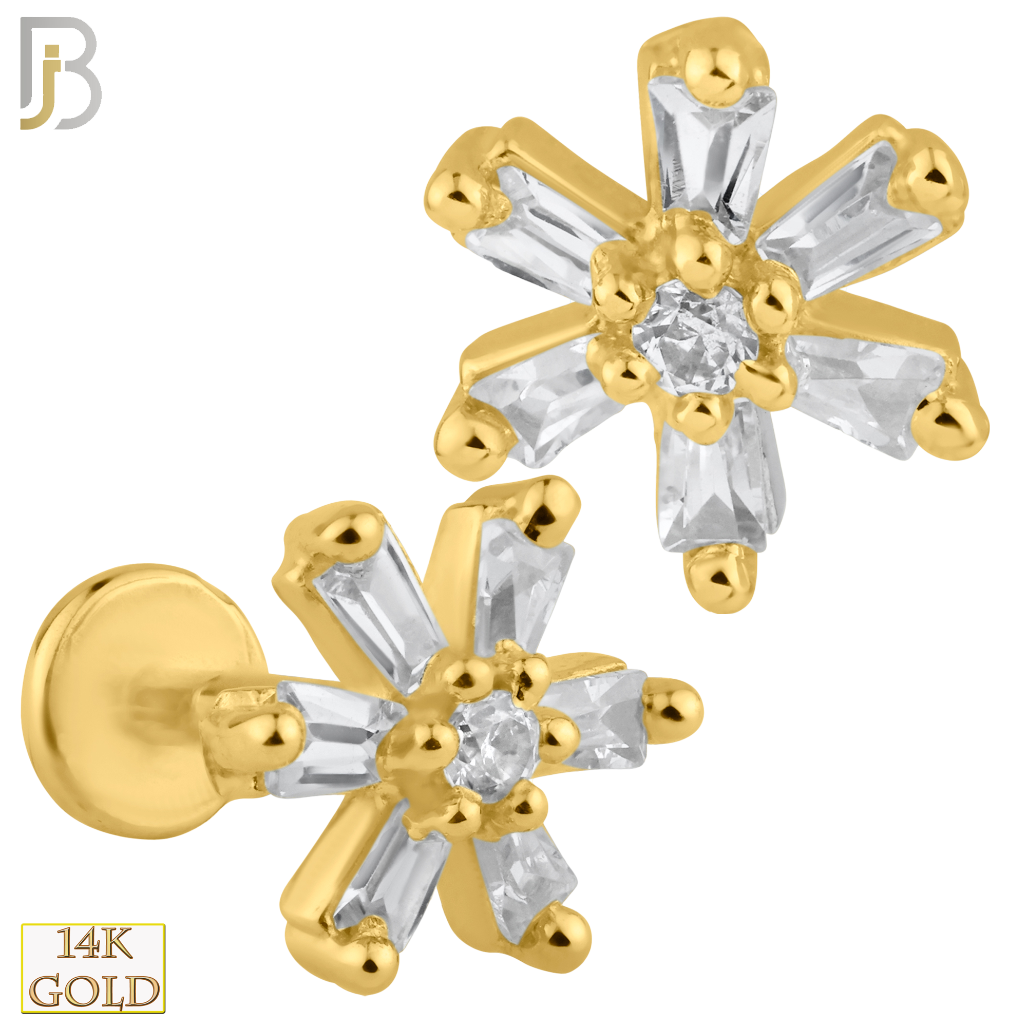 14k Solid Gold Daisy Flower with Zircon Internally Threaded Labret