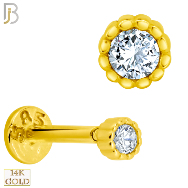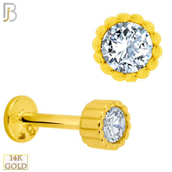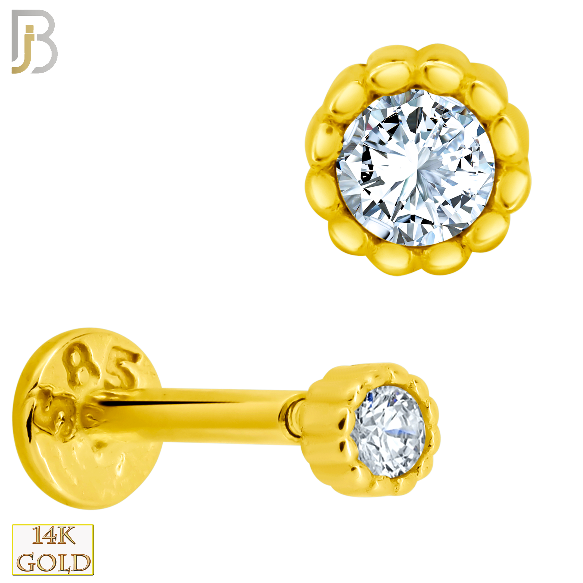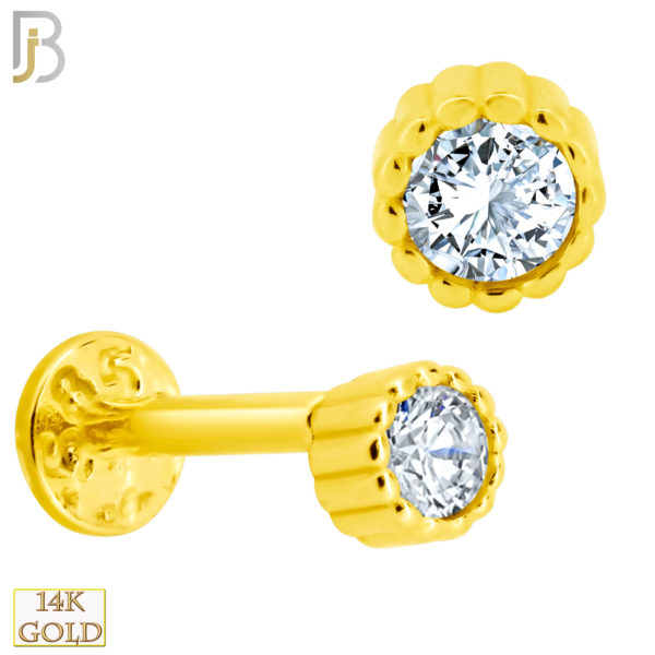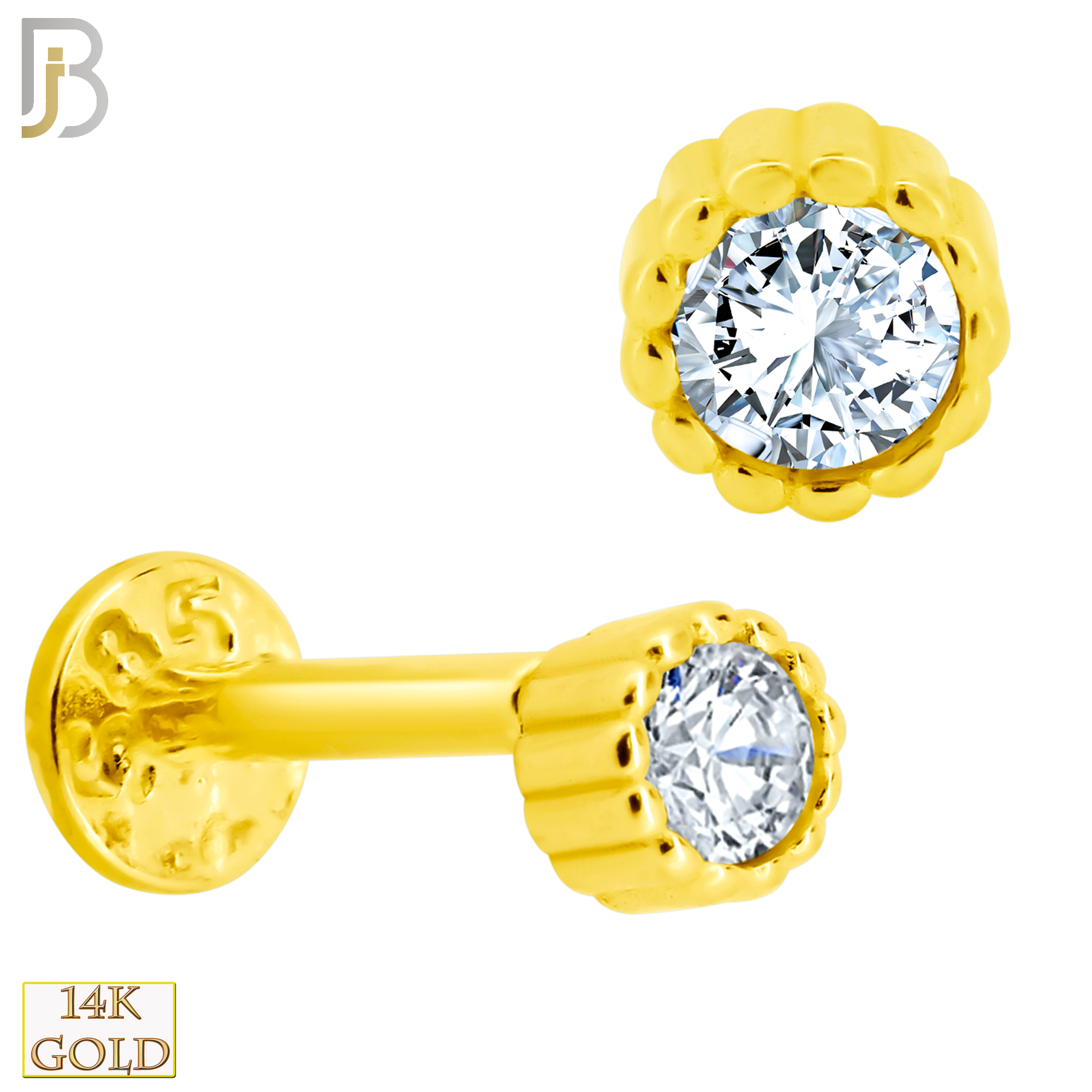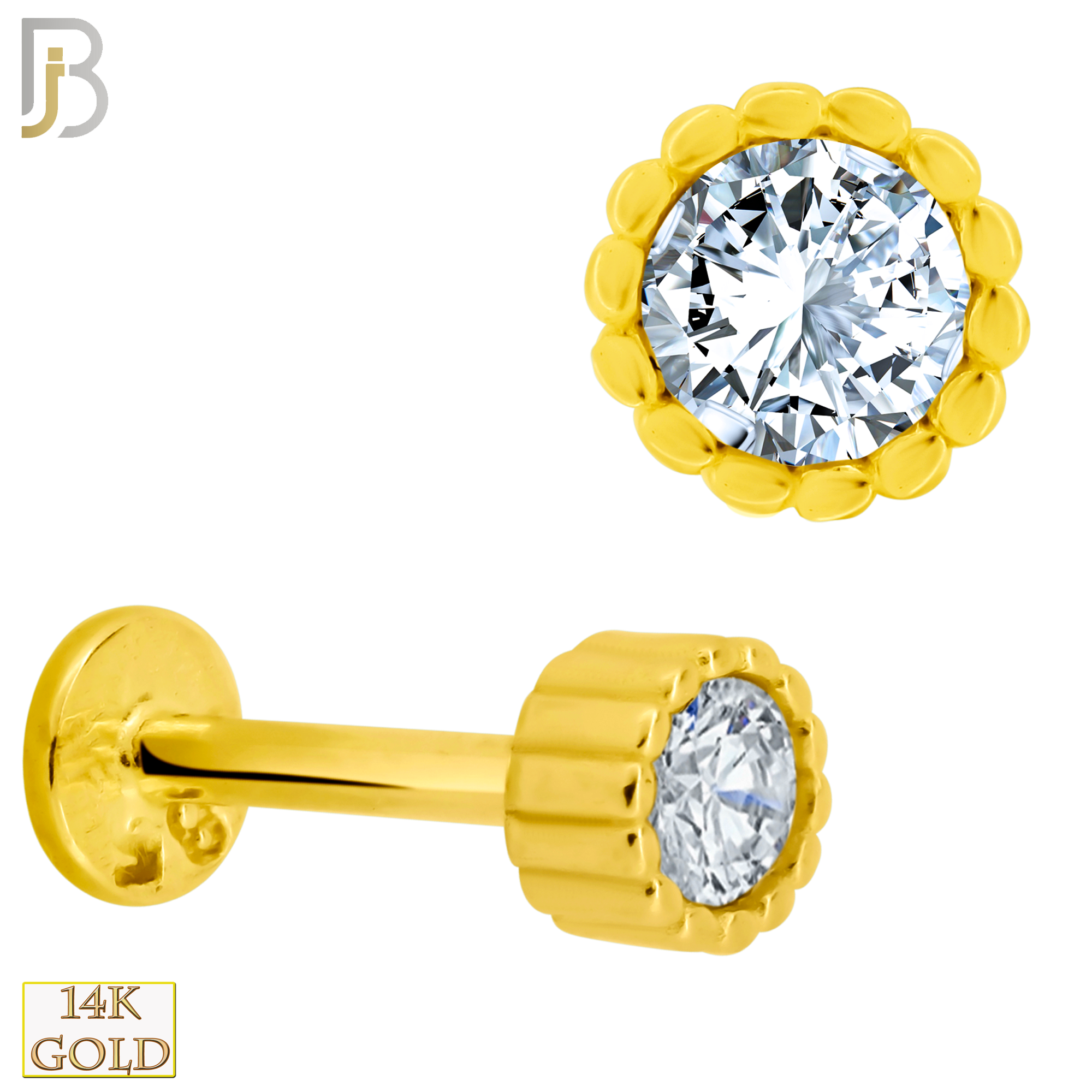 14-LB56 – 14k Yellow Gold 16g Labret with Round CZ Bezel Setting