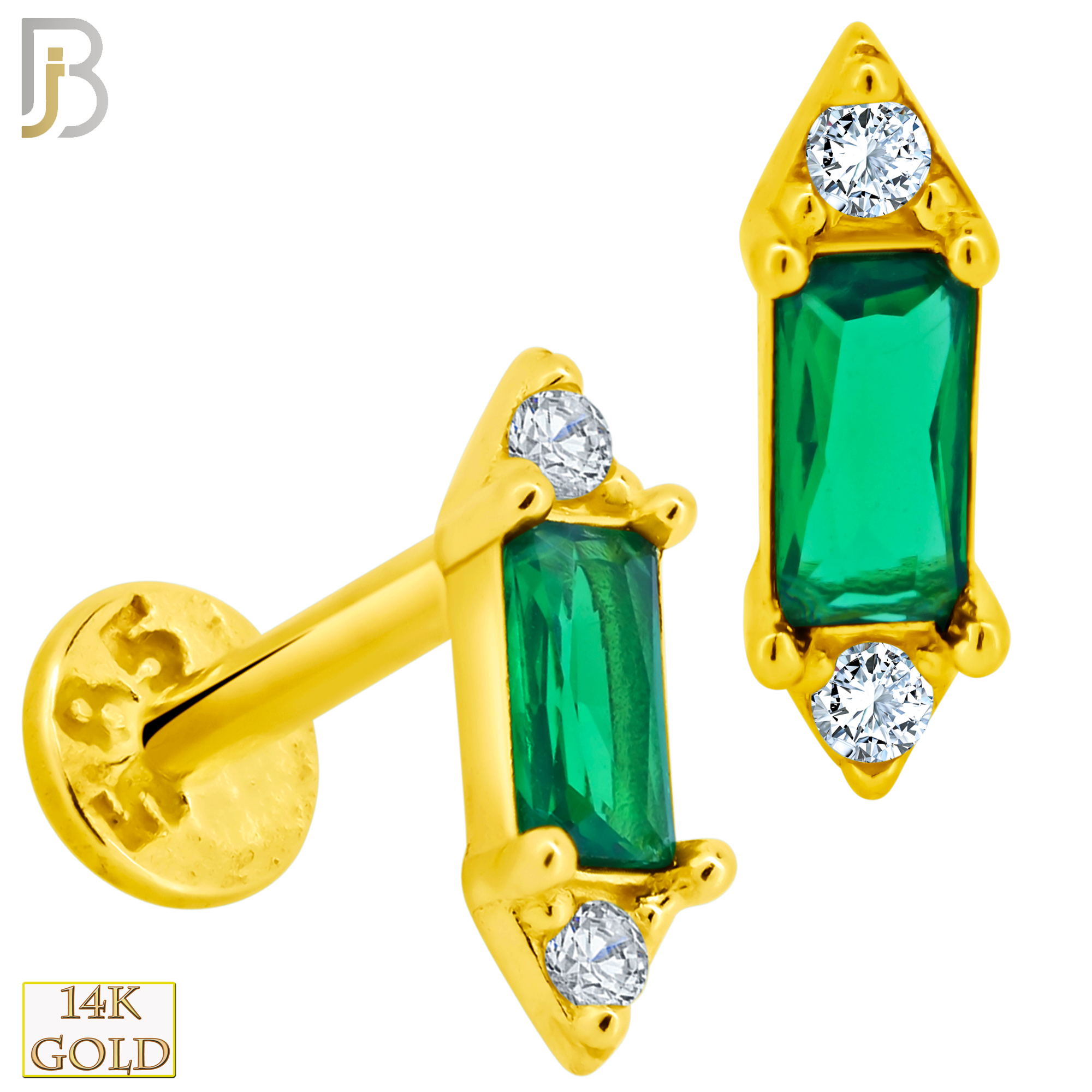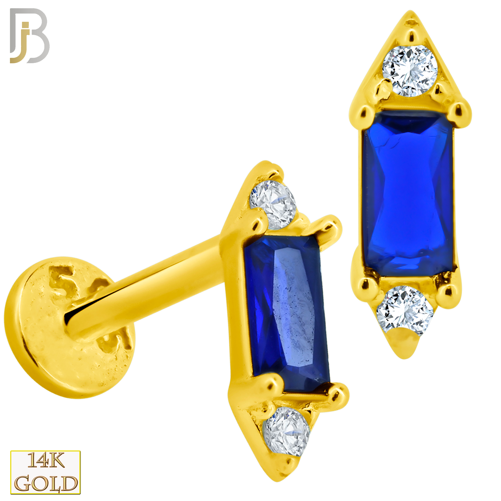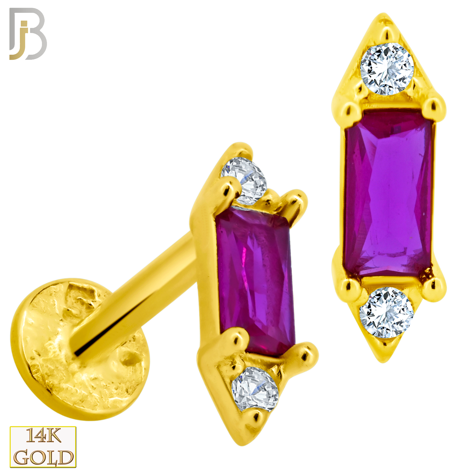 14k Yellow Gold Labret with Colored Baguette Zircon Center