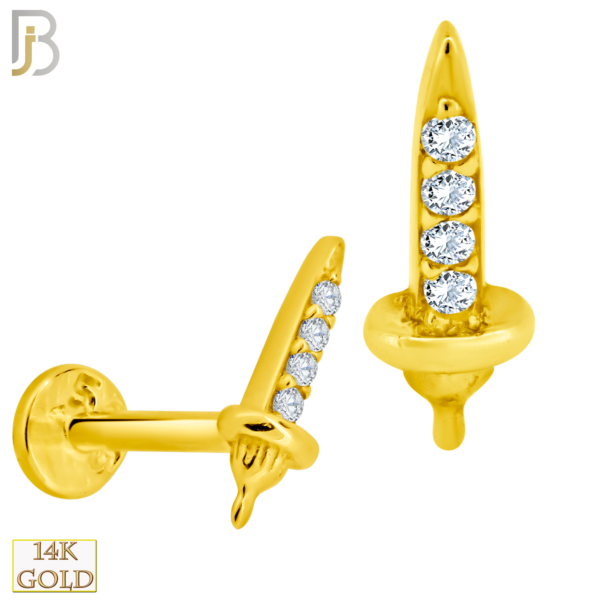 14k Yellow Gold Sword Labret with Multi Zircon