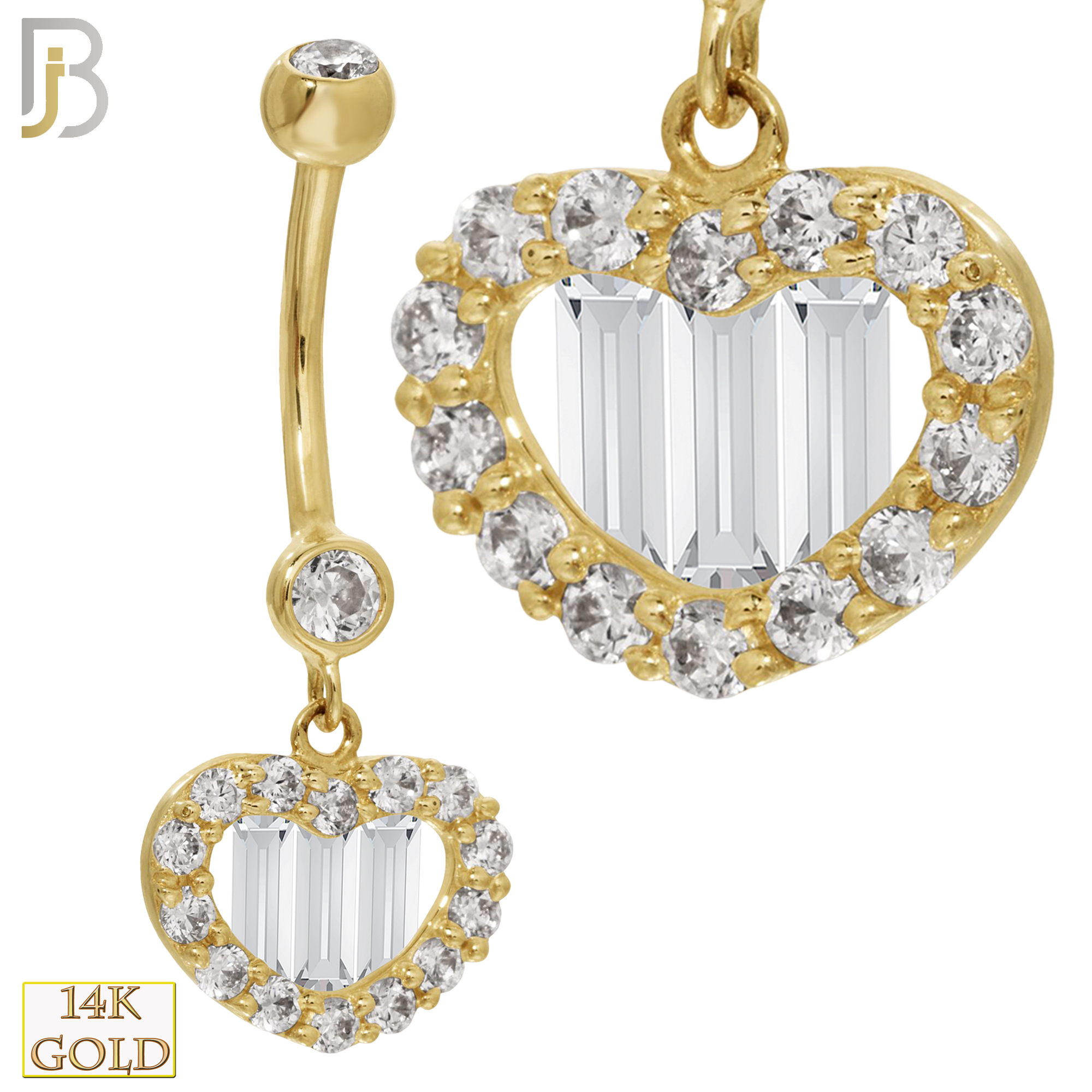 14k Solid Gold Heart with Zircon and Baguette Zircon Design Banana Belly Ring