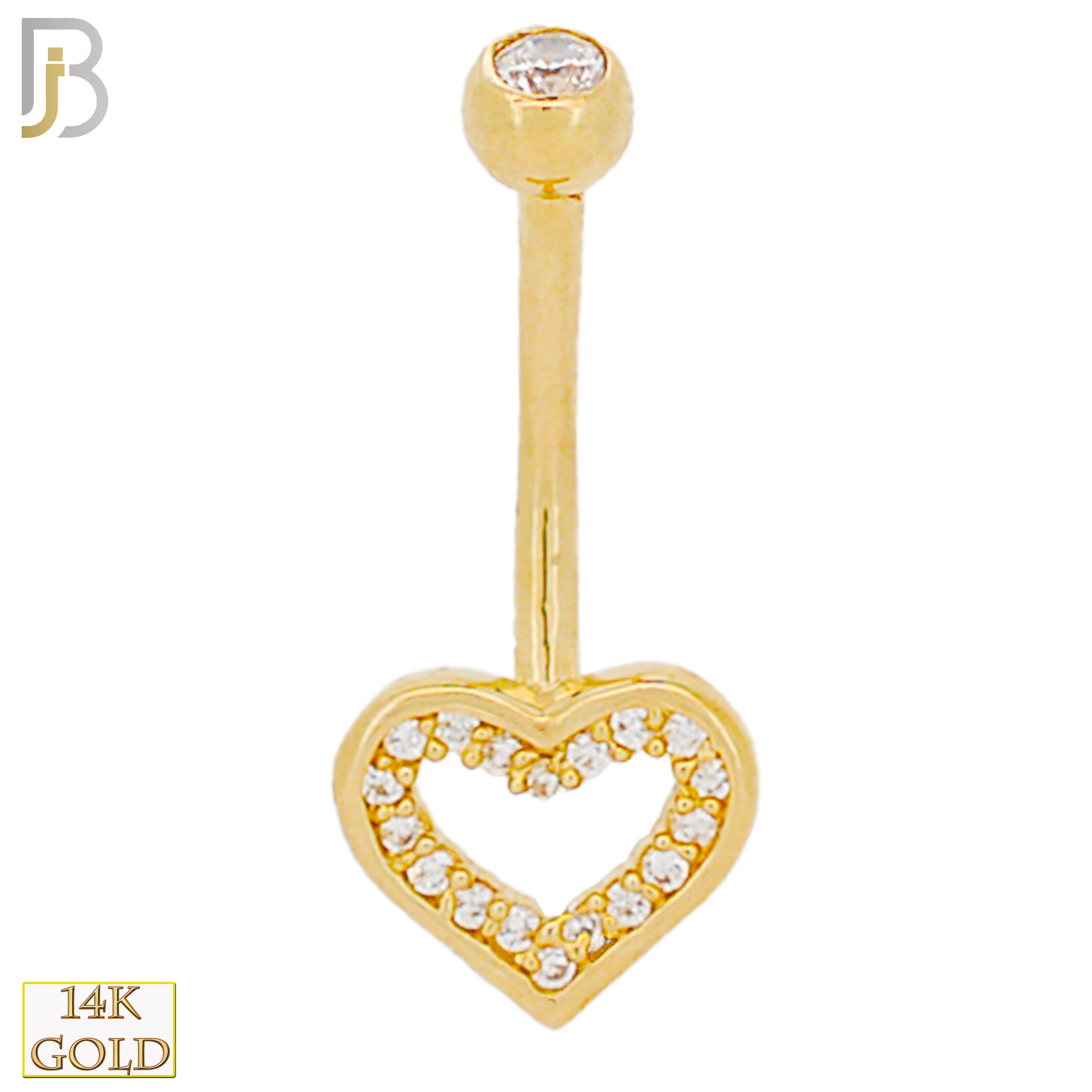 14k Solid Gold Banana Belly Ring with Heart Design with CZ