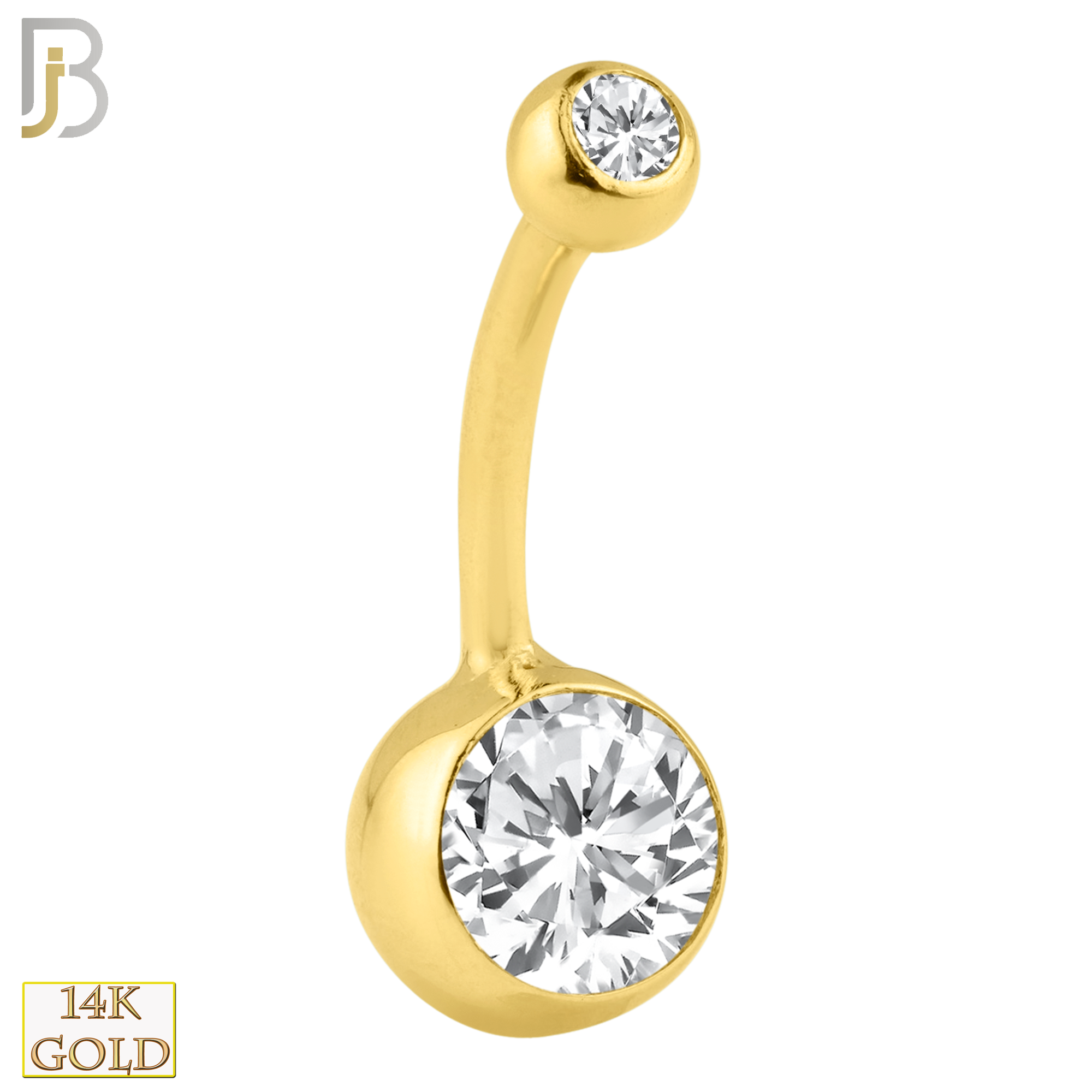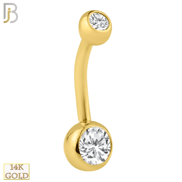14k Solid Gold Double Gem Bezel Zircon Plain Banana Belly Ring