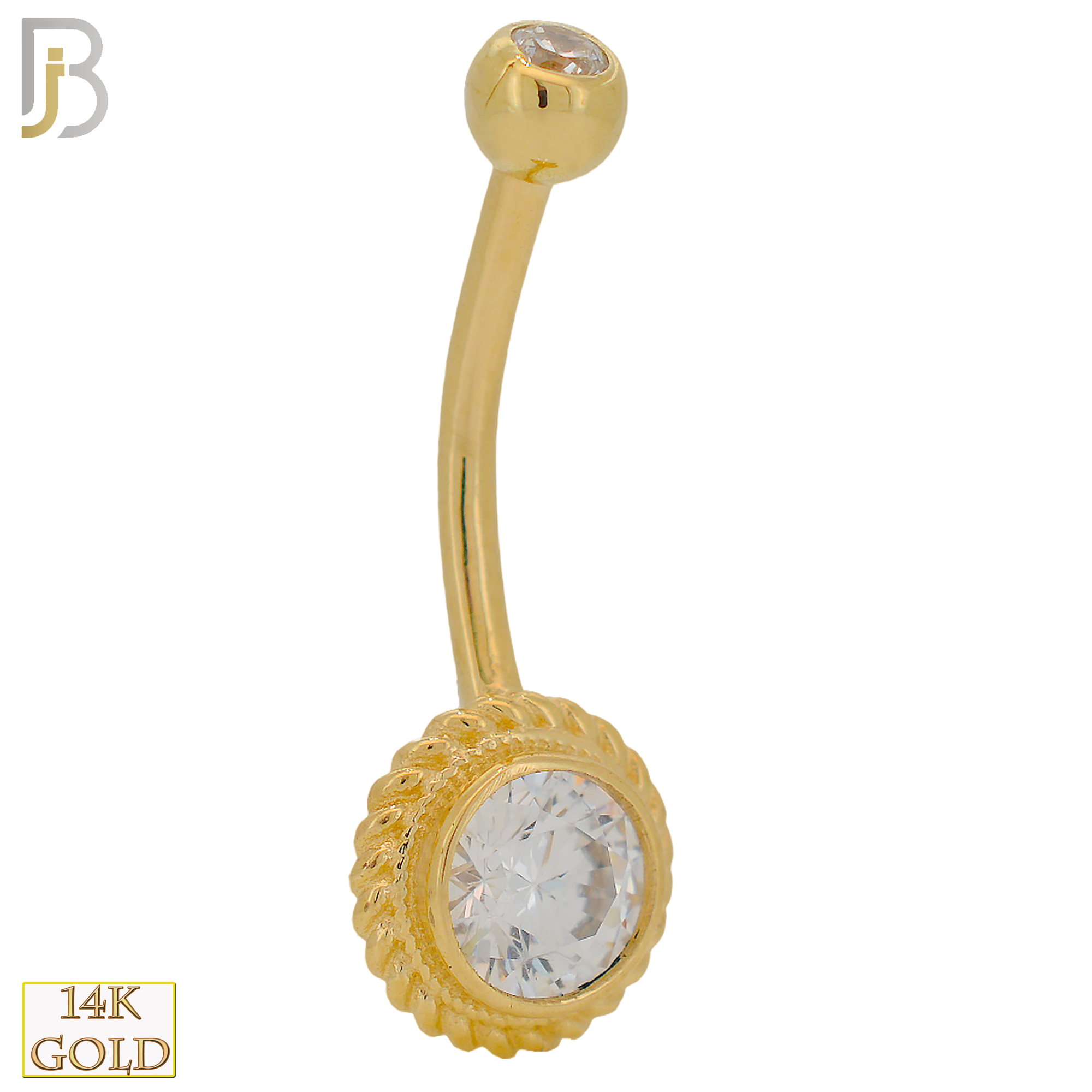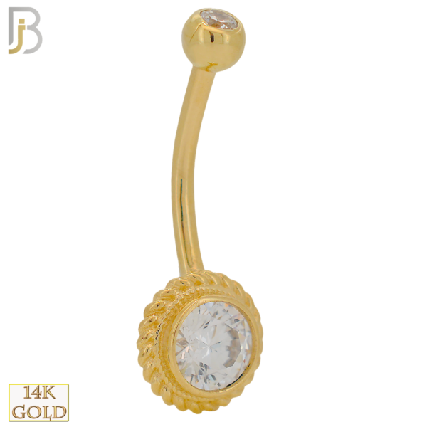 14k Gold Round CZ in Bezel Setting Belly Ring