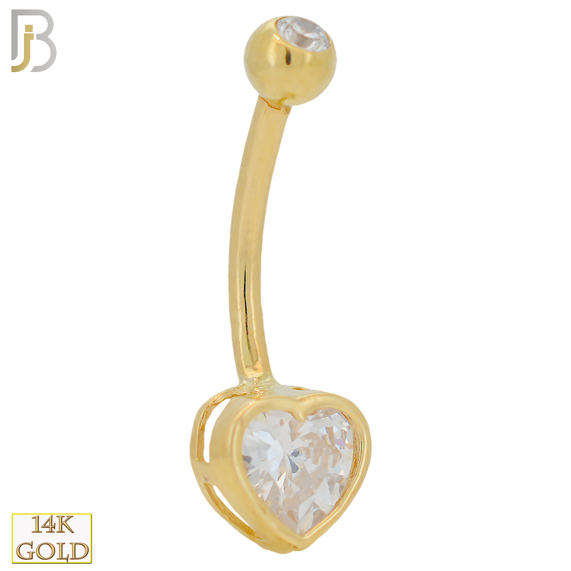 14-NB29 – 14k Gold Heart Shaped CZ in Bezel Setting Belly Ring