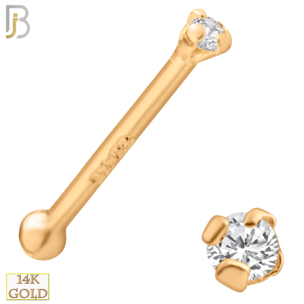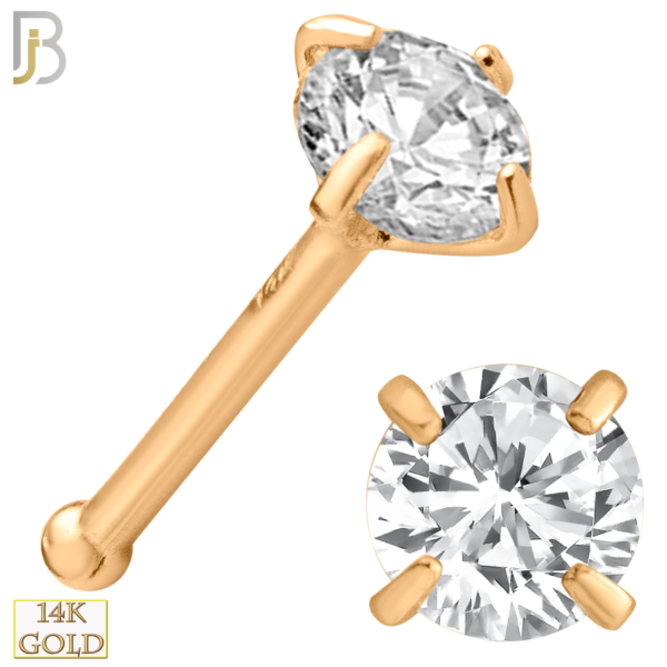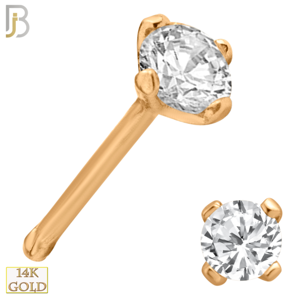 20g Thickness 14k Solid Rose Gold Prong Setting Round Cubic Zirconia Nose Bone