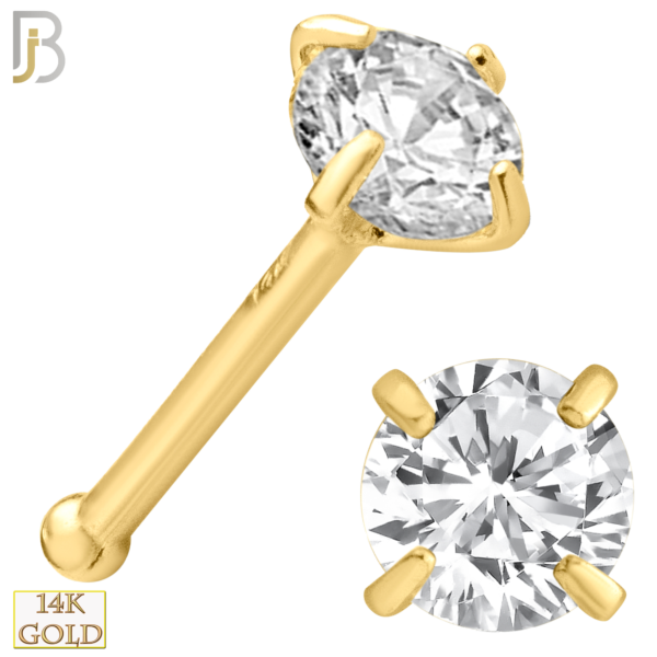 20g Thickness 14k Solid Yellow Gold Prong Setting Round Cubic Zircona Nose Bone