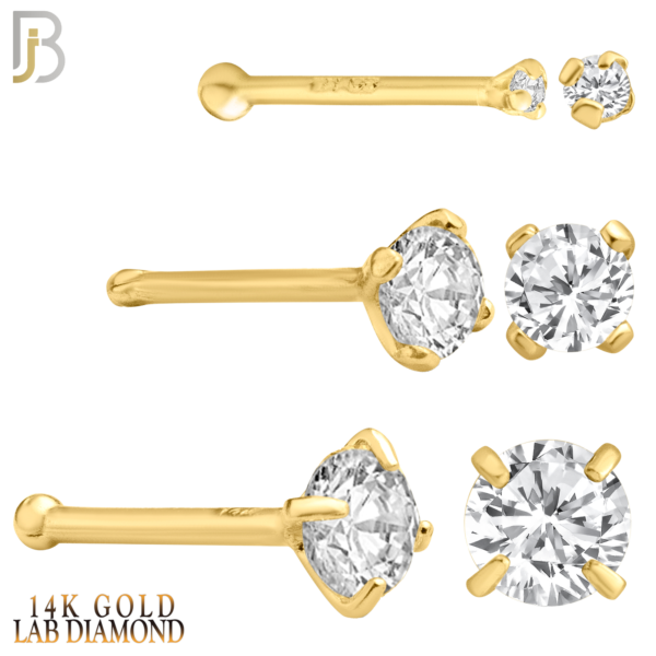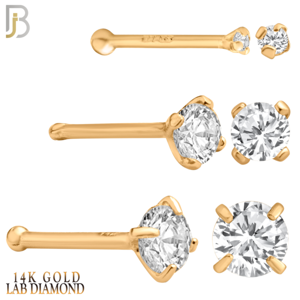 14k Solid Gold Prong Setting Round Lab Diamond Nose Bone