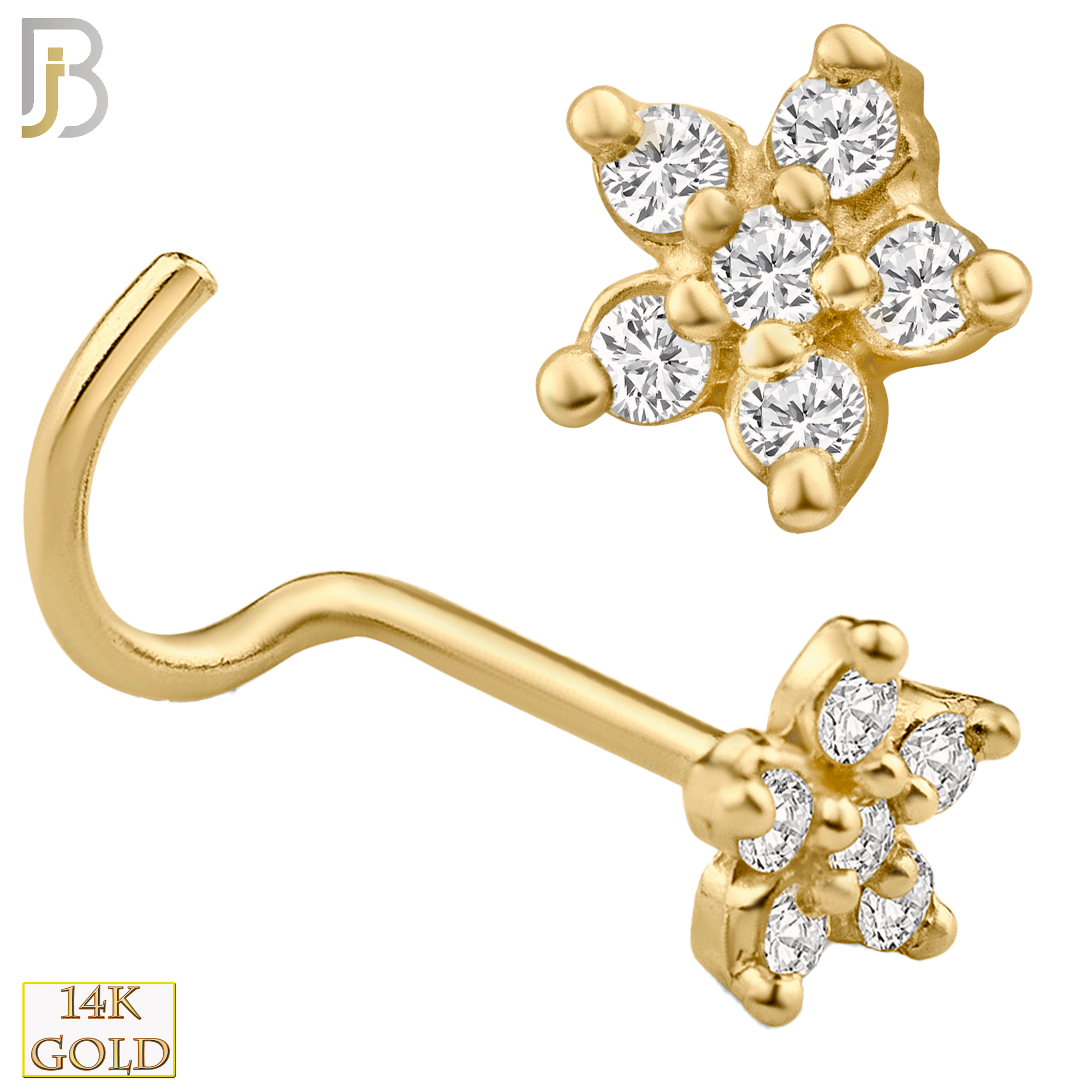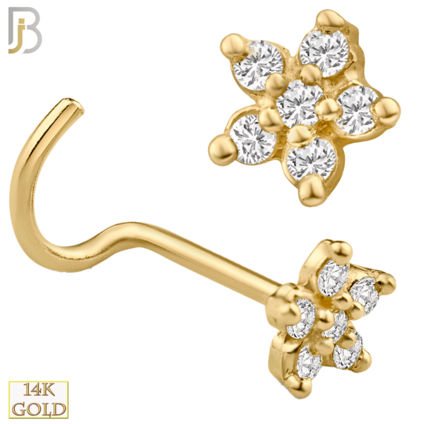 14K Solid Gold Star Shaped Flower Design with CZ Nose Screw
