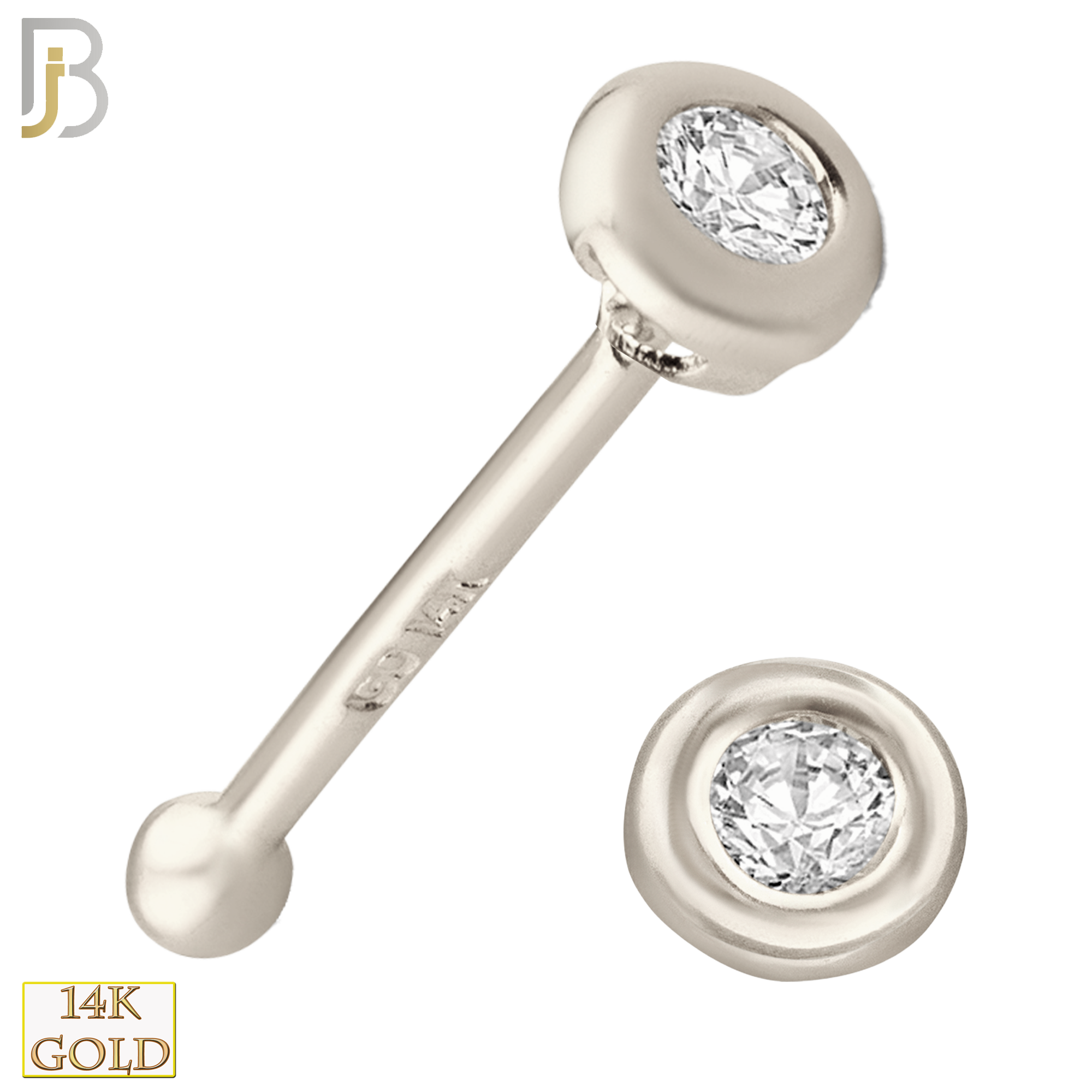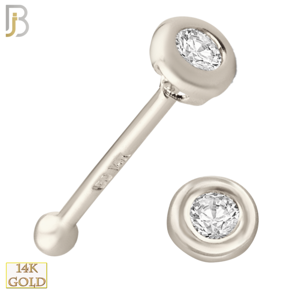 14k White Gold Nose Bone with Round Cubic Zirconia in Bezel Setting