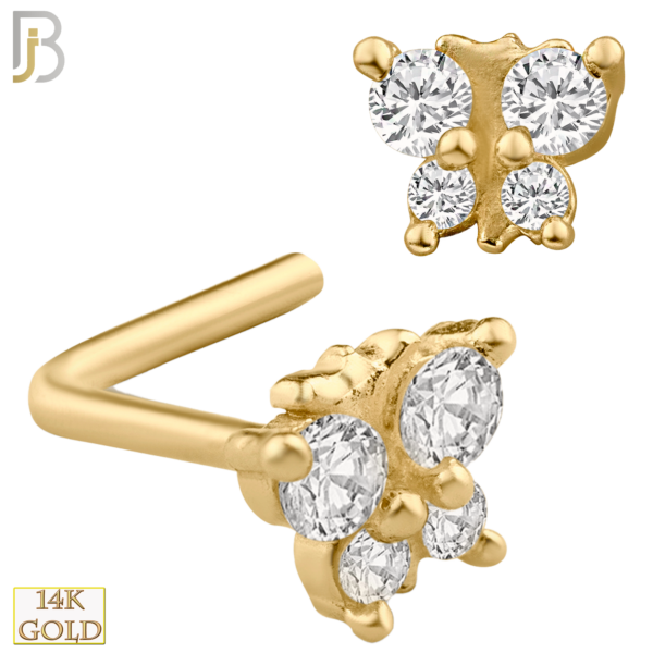 14k Solid Gold Butterfly Design with CZ L Shaped Nose Ring