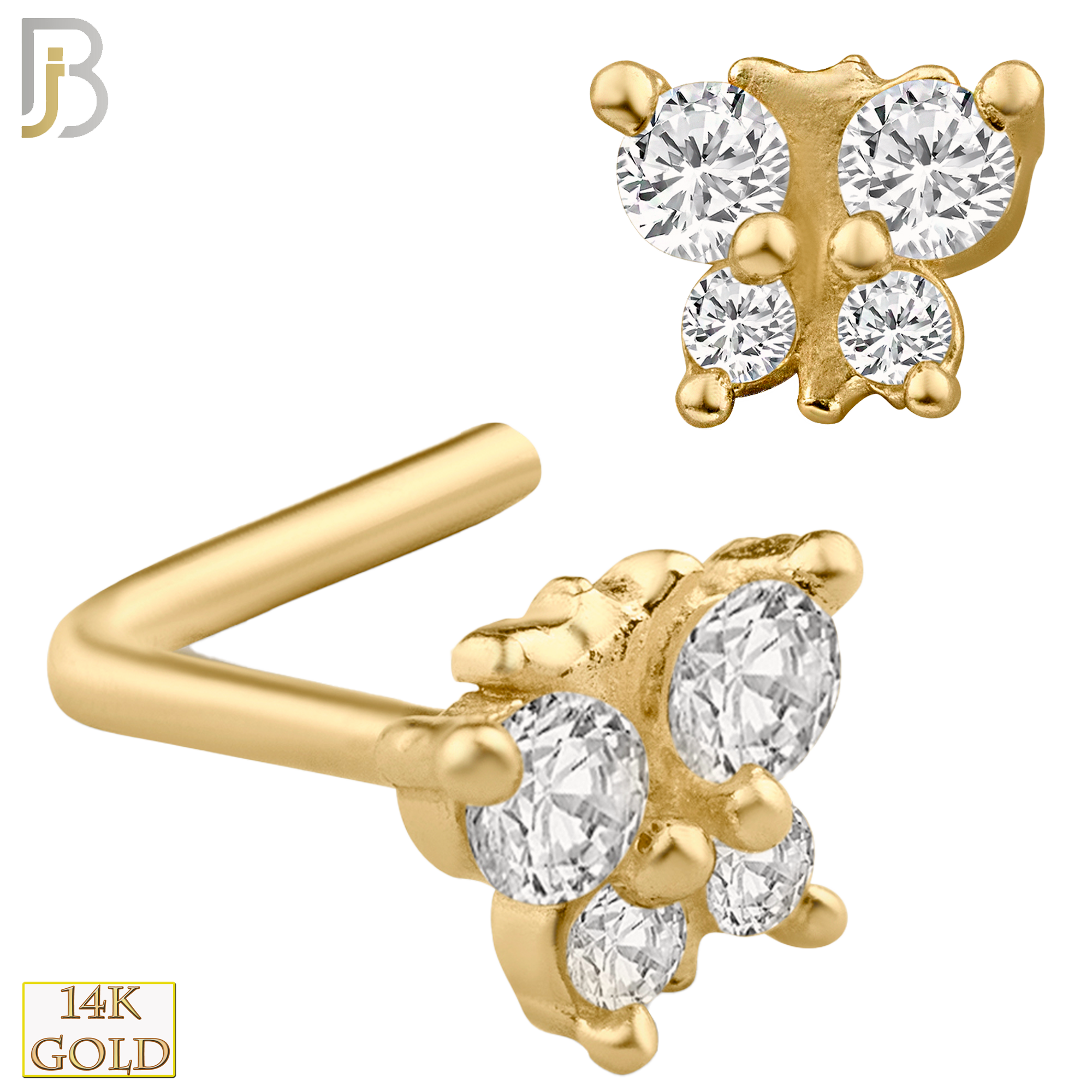 14-NR34L- 14k Solid Gold Butterfly Design with CZ L Shaped Nose Ring